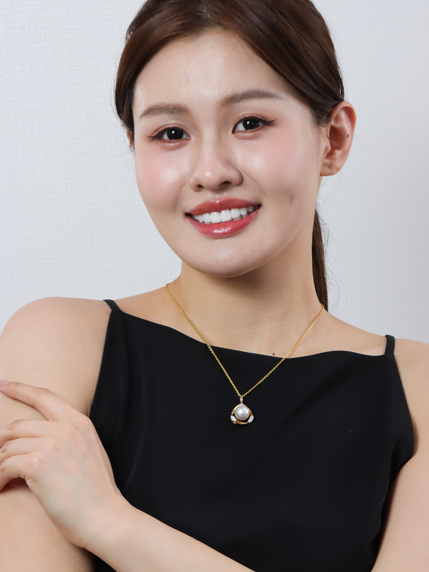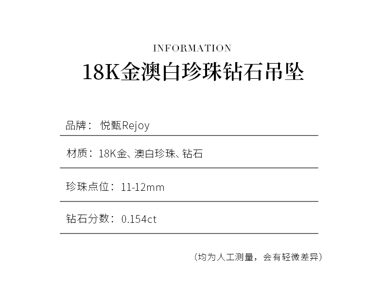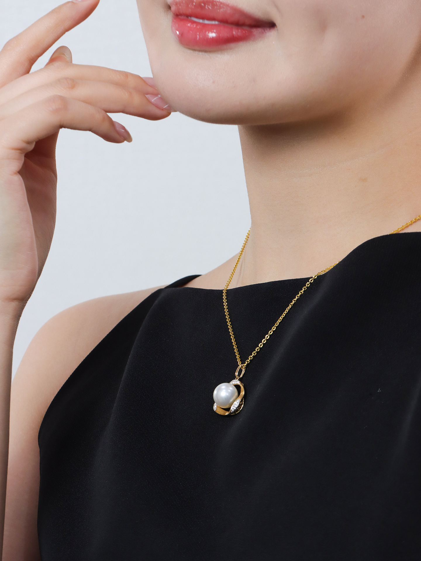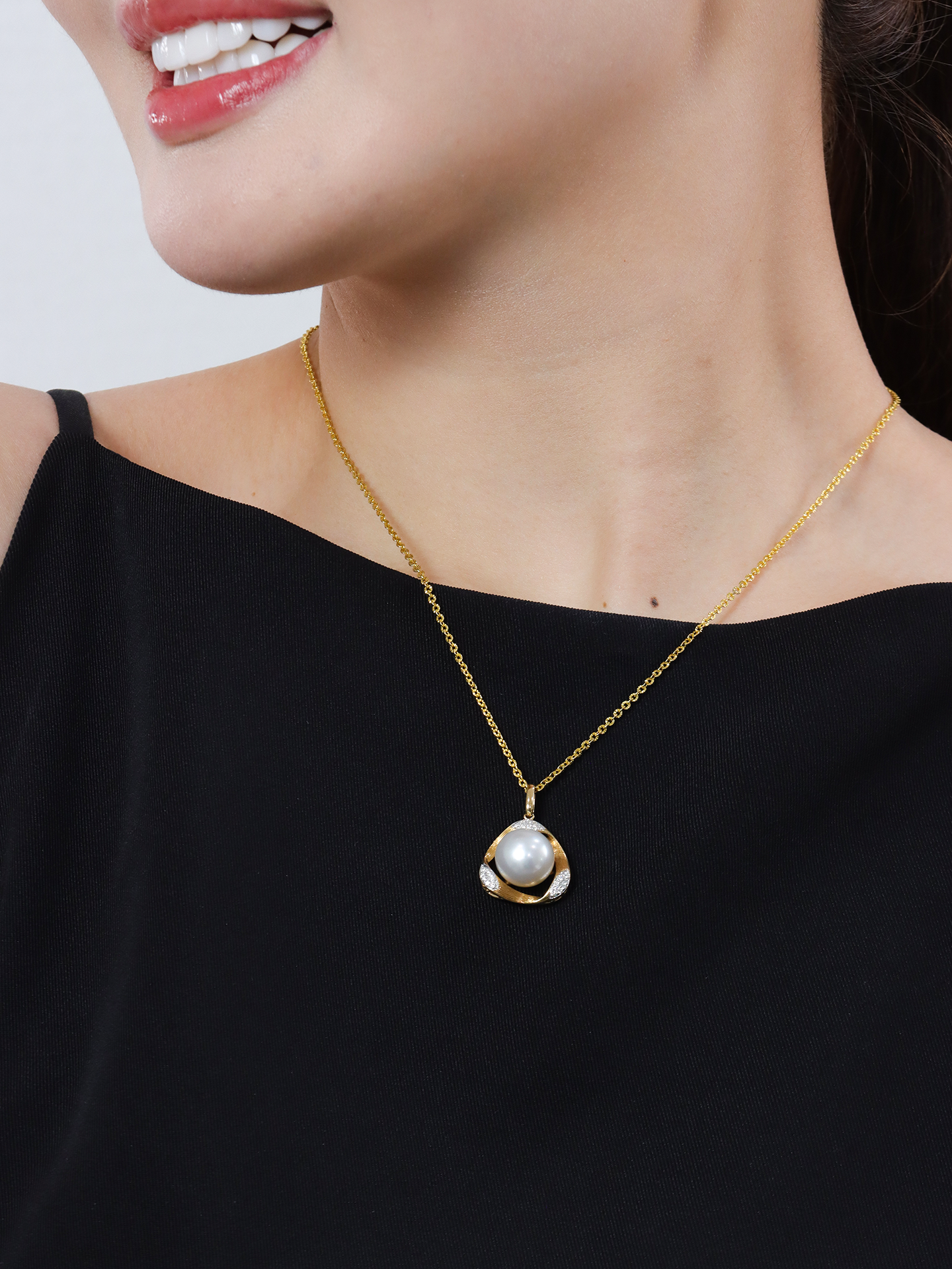 【挚友限定】18K金磨砂澳白珍珠钻石吊坠11-12