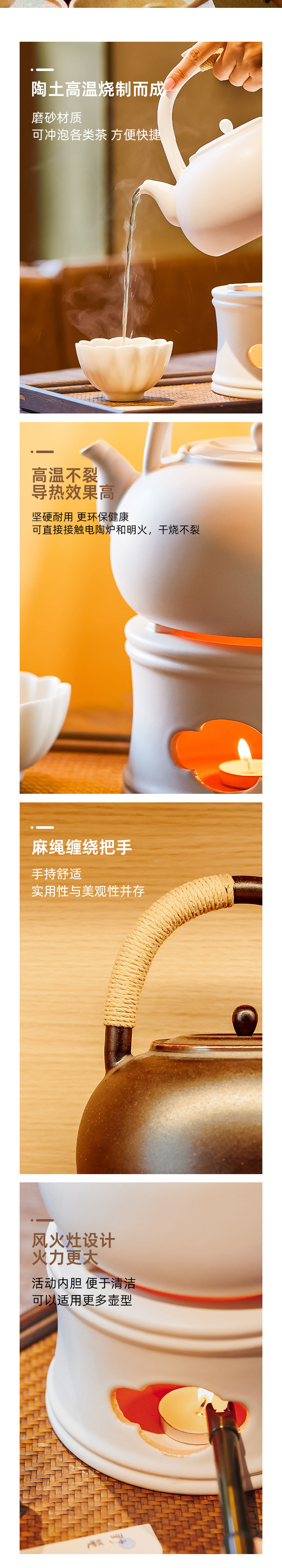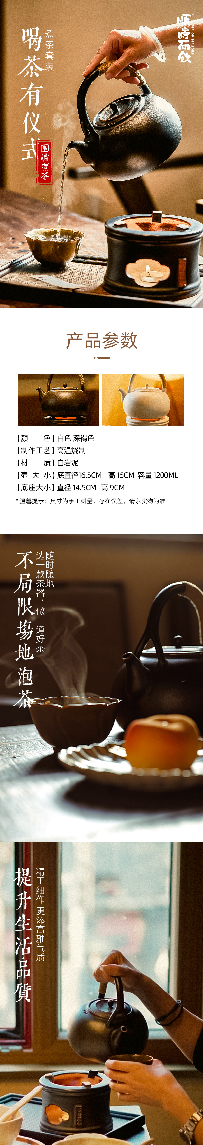 顺时而饮 | 提梁壶套装 复古简约 围炉煮茶 喝茶更有仪式感(白色 深褐色 )