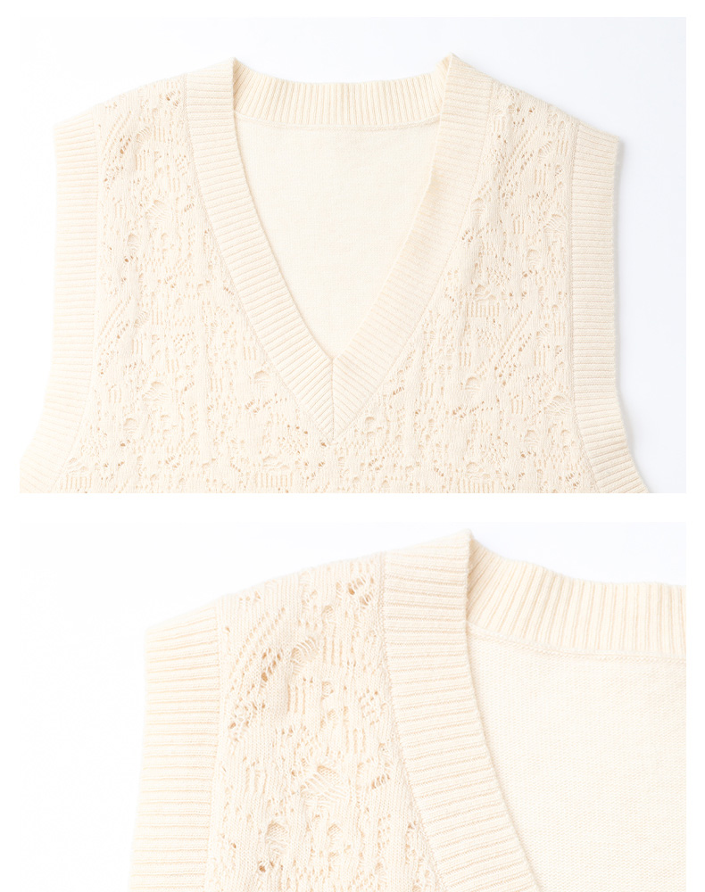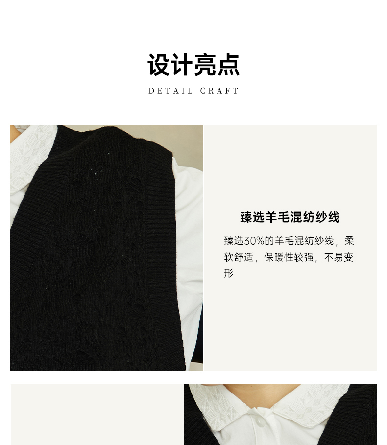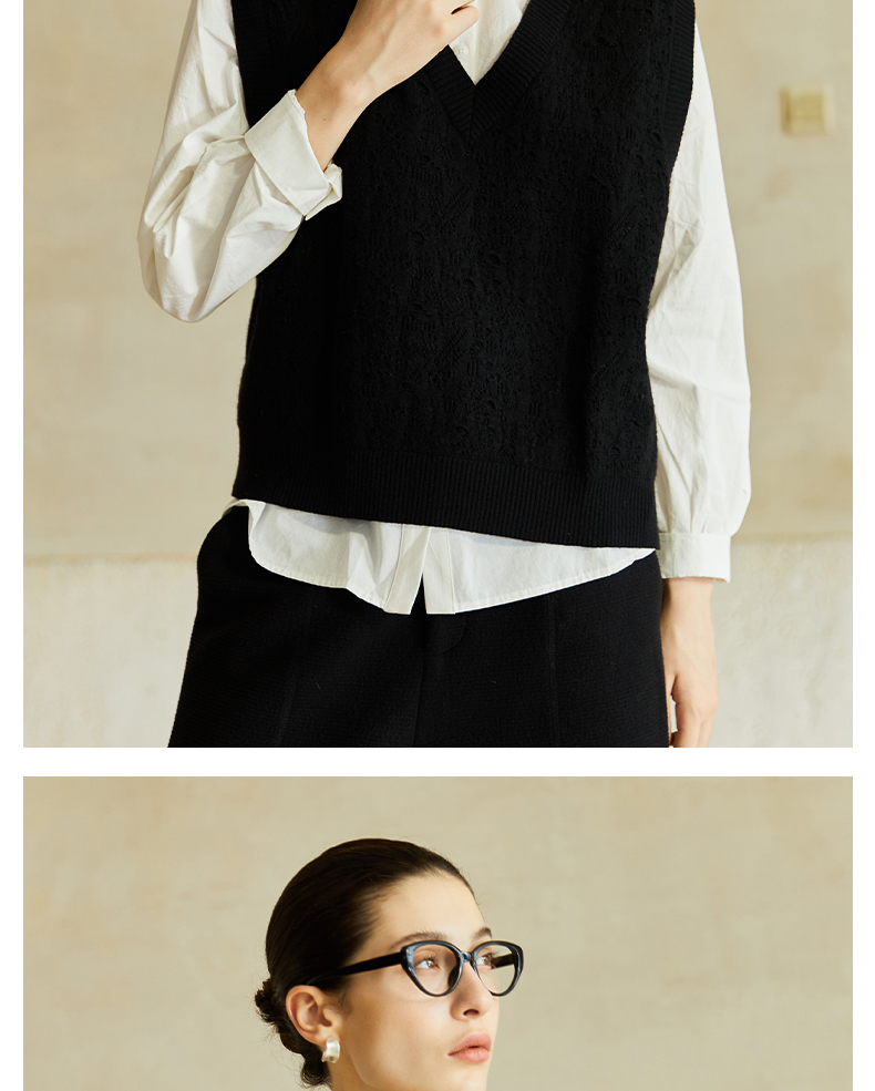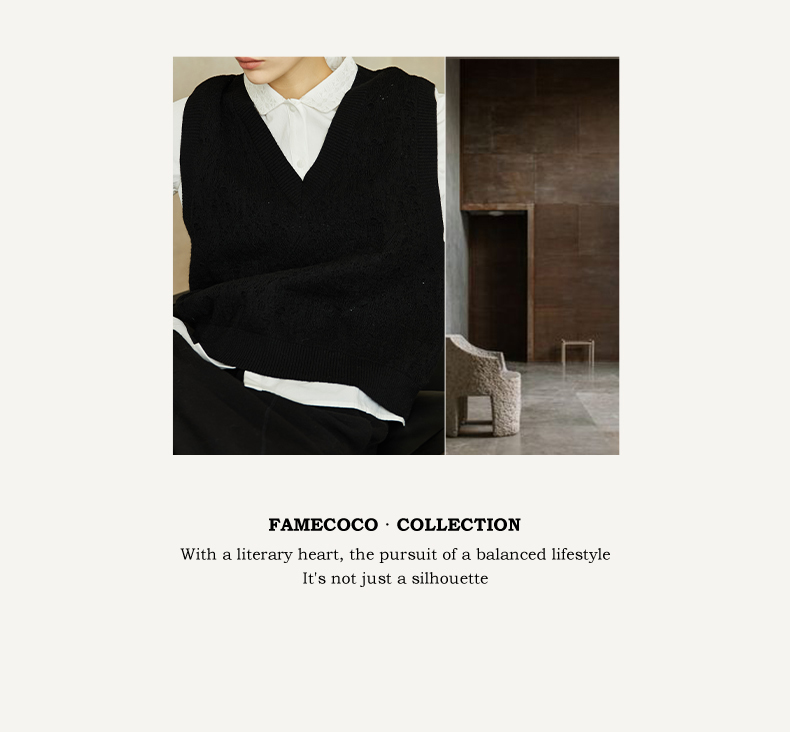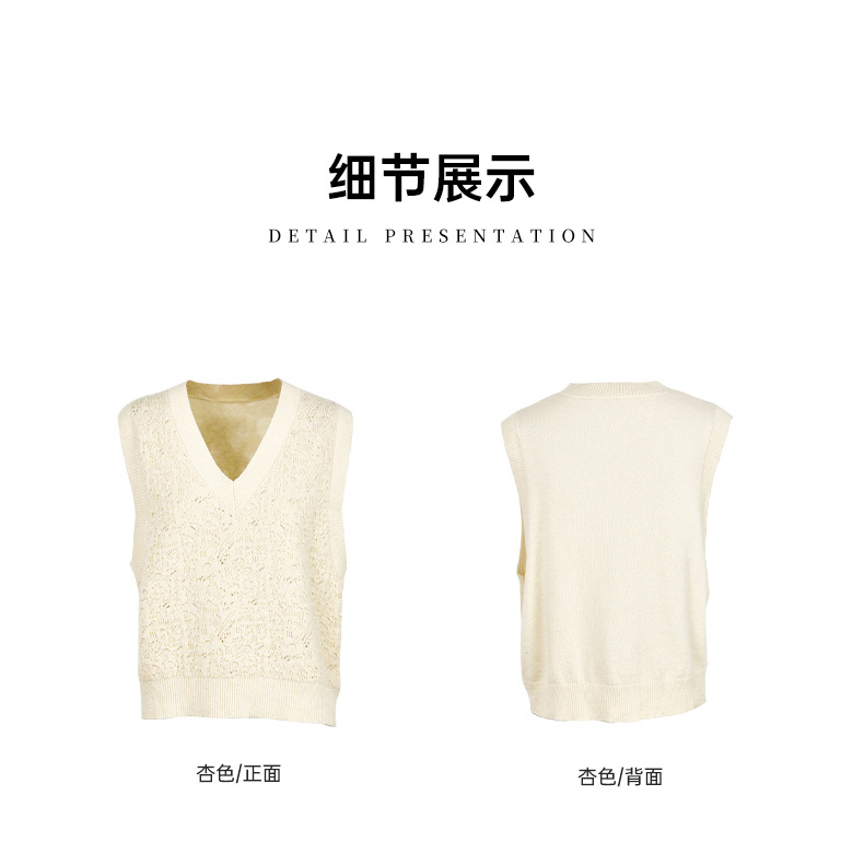 Famecoco范可儿高级感V领镂空针织马甲宽松短款外搭背心叠穿FAC8CA006