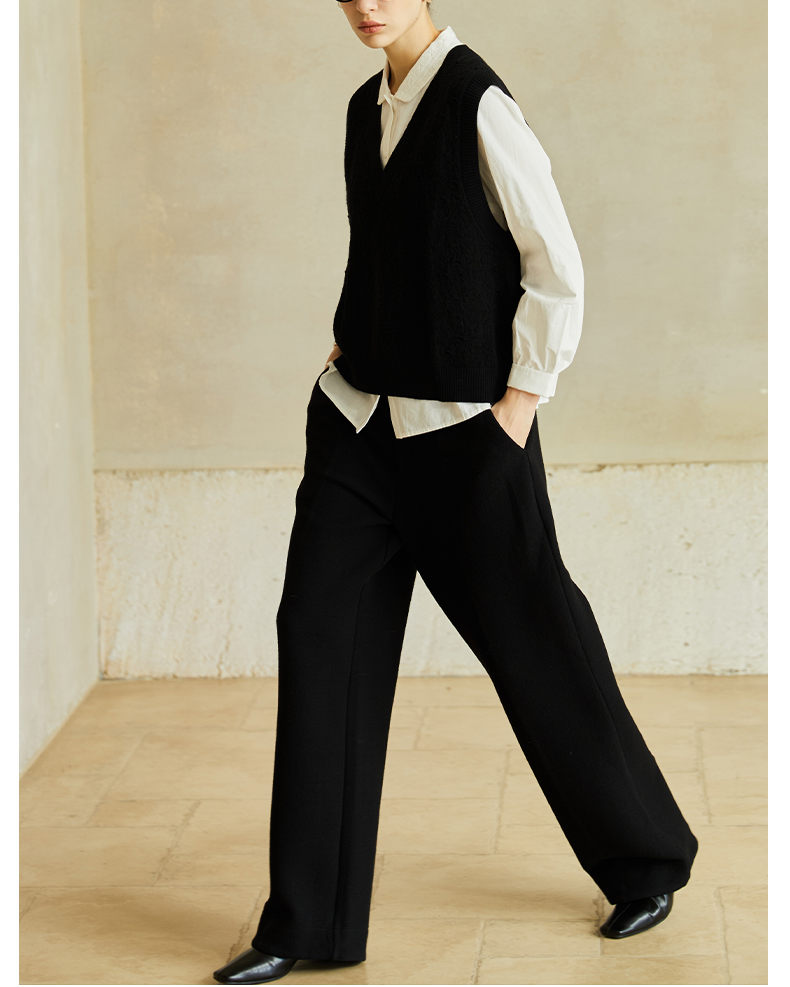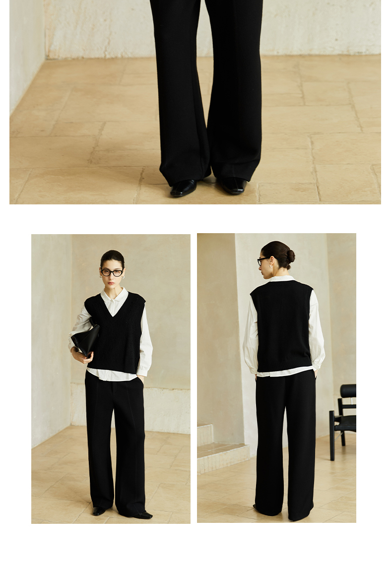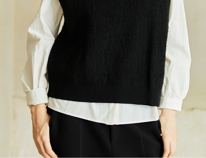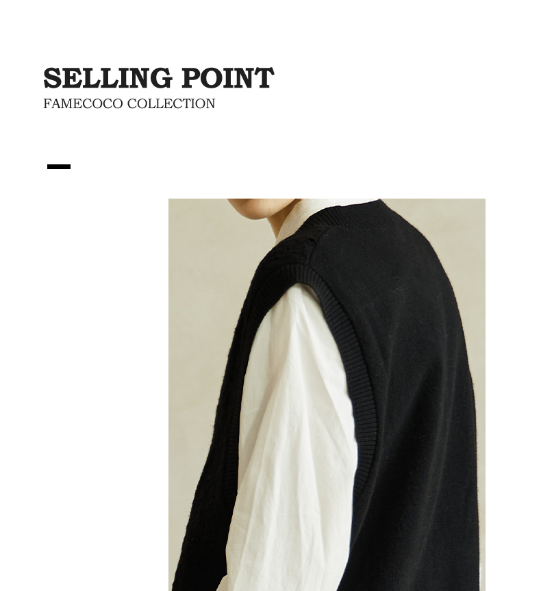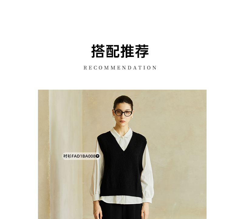 Famecoco范可儿高级感V领镂空针织马甲宽松短款外搭背心叠穿FAC8CA006