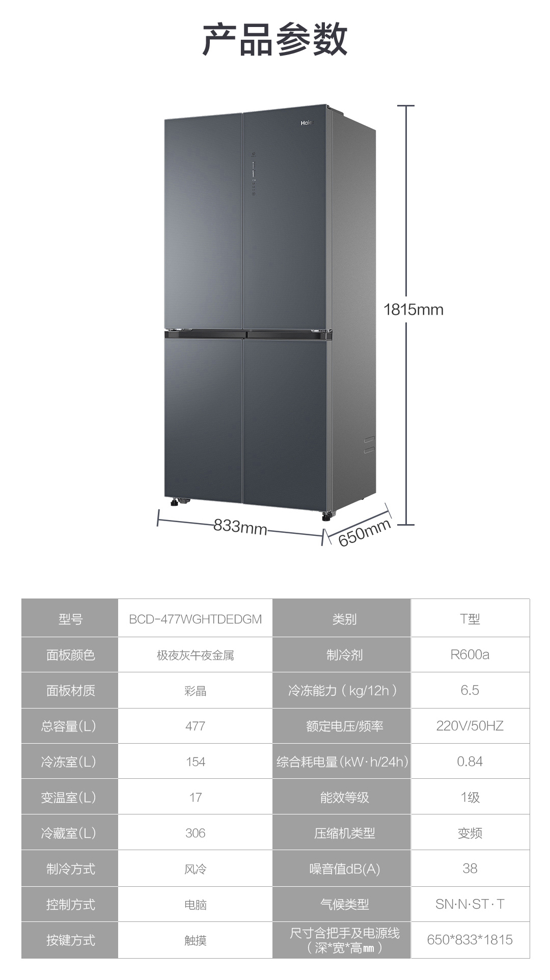 海尔(Haier)冰箱 BCD-477WGHTDEDGM