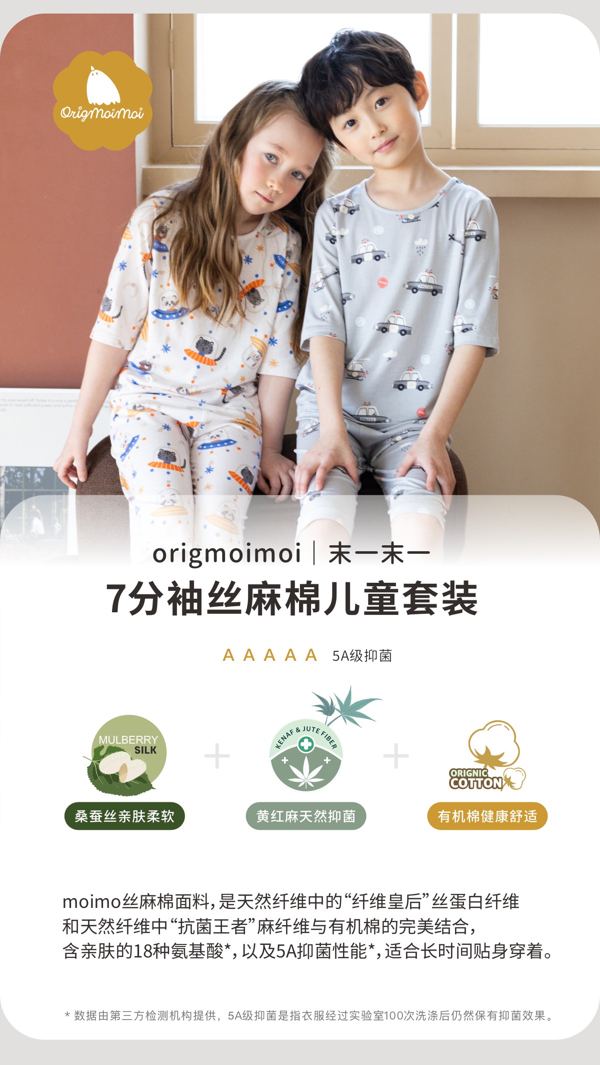 【丝麻棉天然抗菌】韩国moimoi {7分套} 春夏七分套儿童家居服套装短袖套睡衣