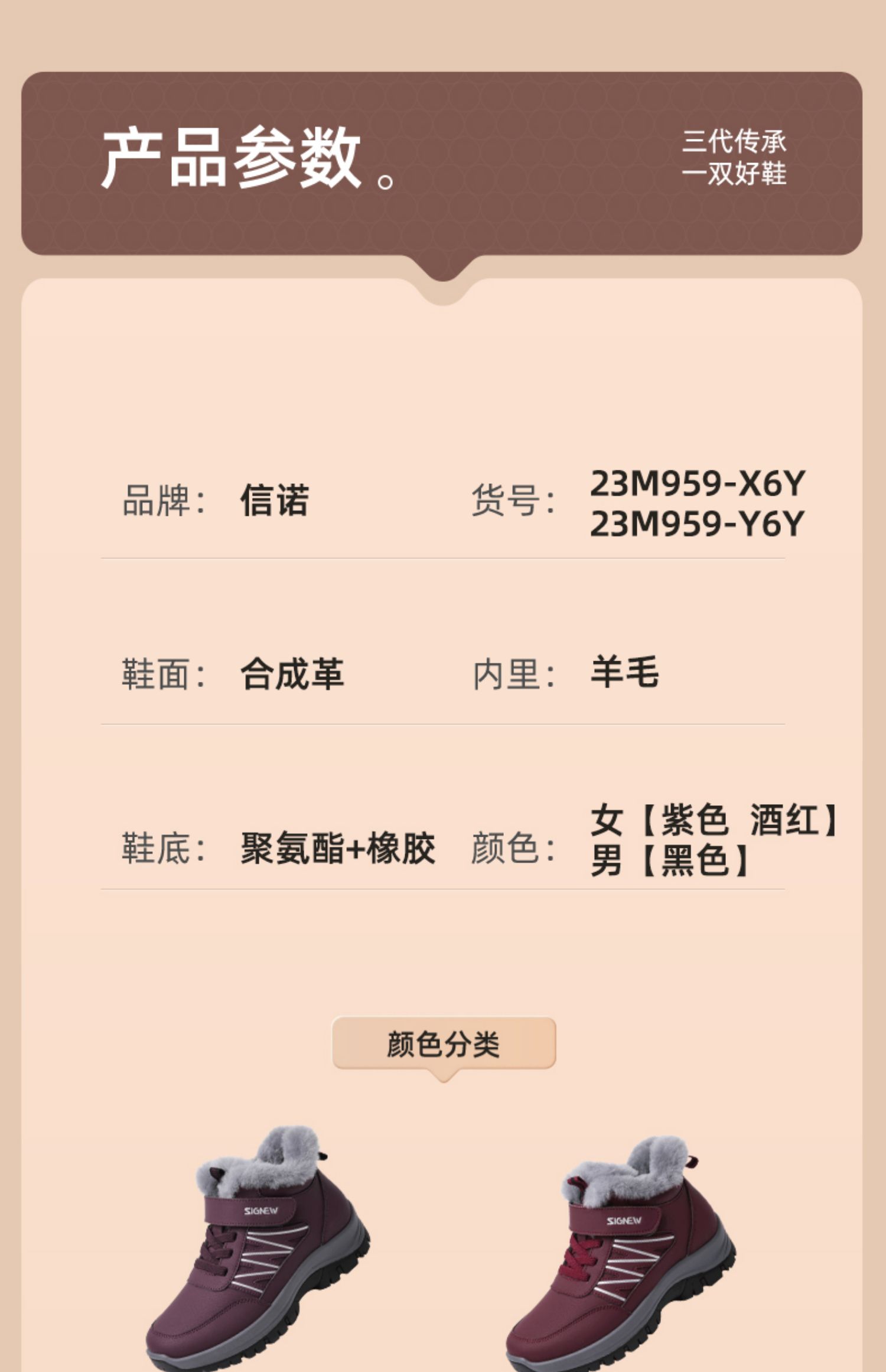 信诺老人鞋男2023年冬季新款大棉鞋男士雪地靴保暖加厚羊毛鞋加绒23M959-Y6Y/23M959-X6Y