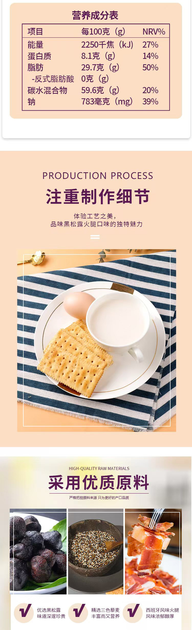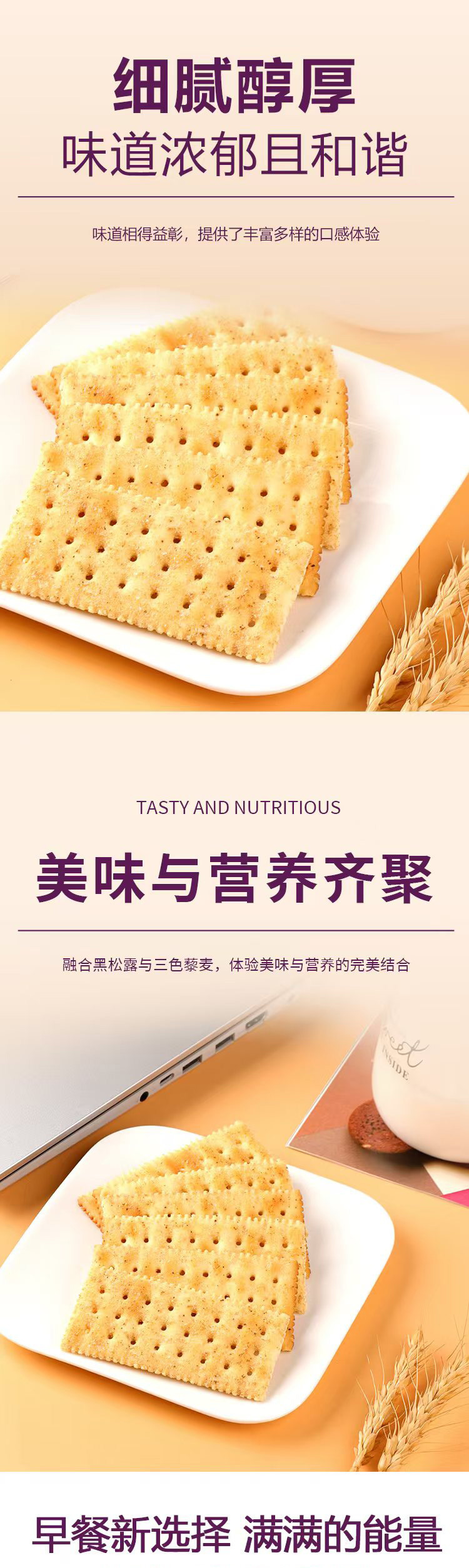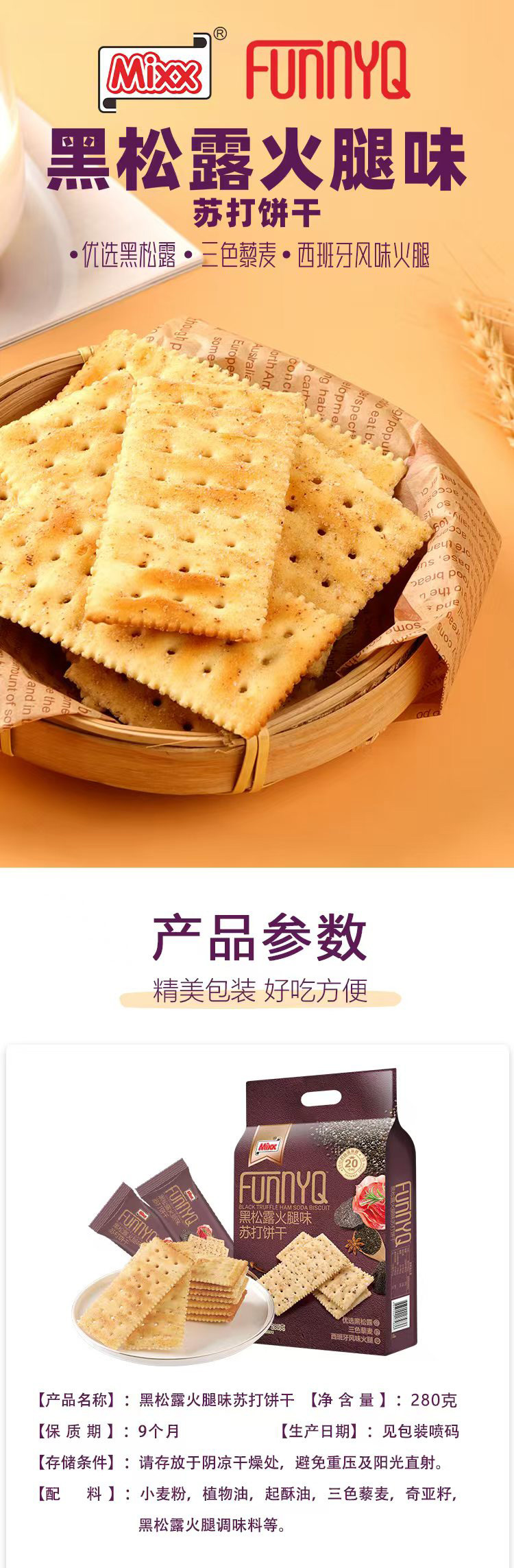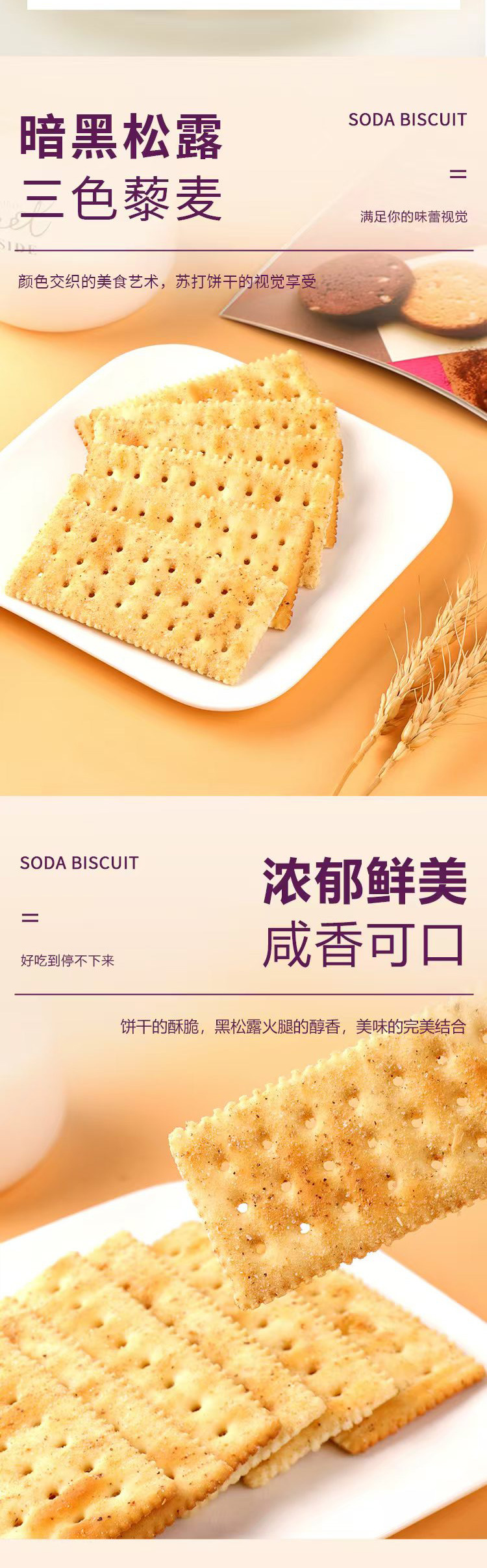 【19.9抢!黑松露火腿味苏打饼干】甄选品质原料制作,优选黑松露/三色藜麦/西班牙风味火腿,细腻醇厚,味道浓郁且和谐,下午茶点代餐休闲零食咸味饼干L