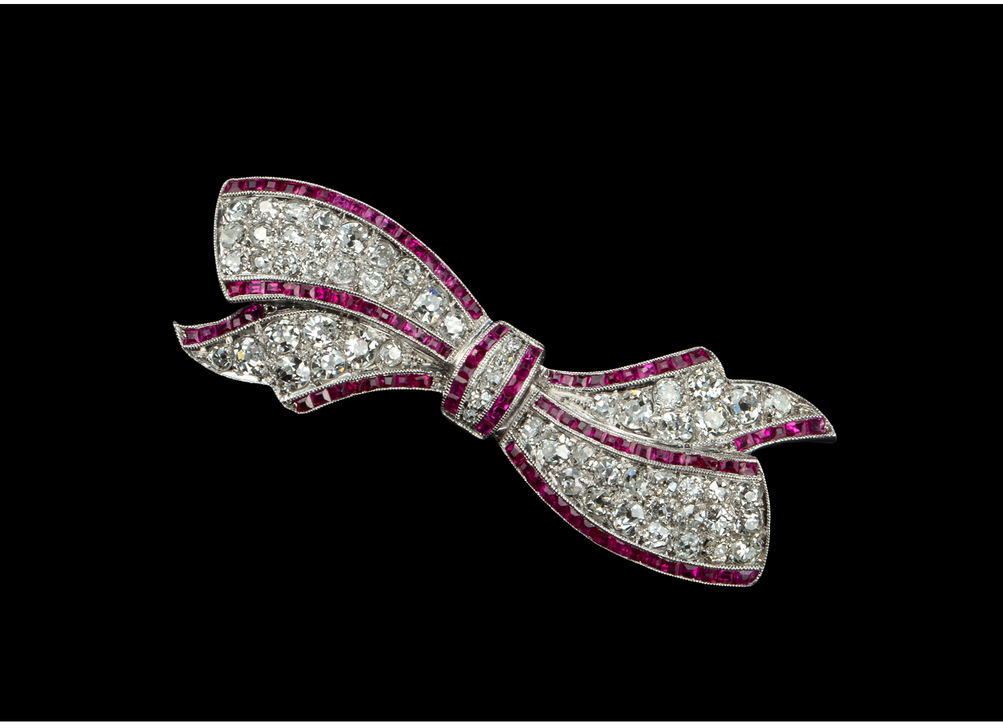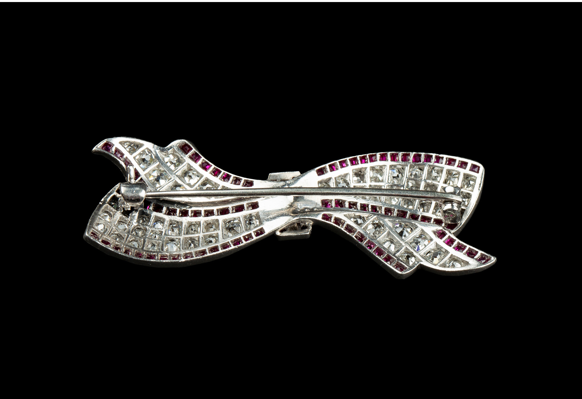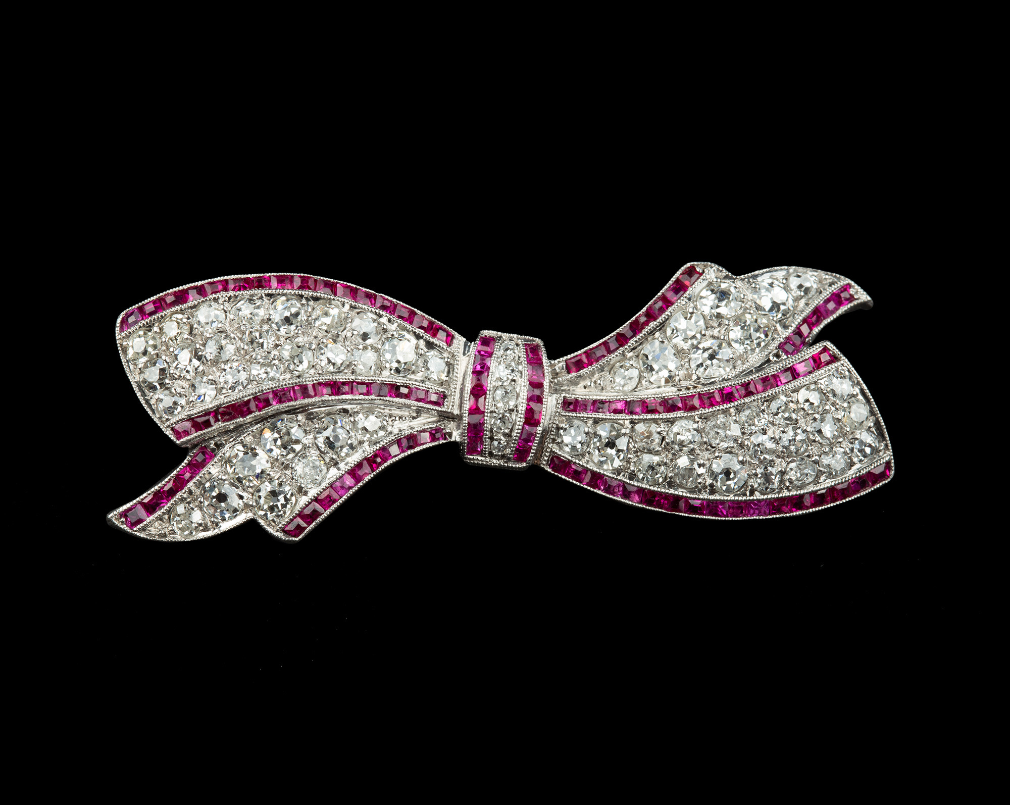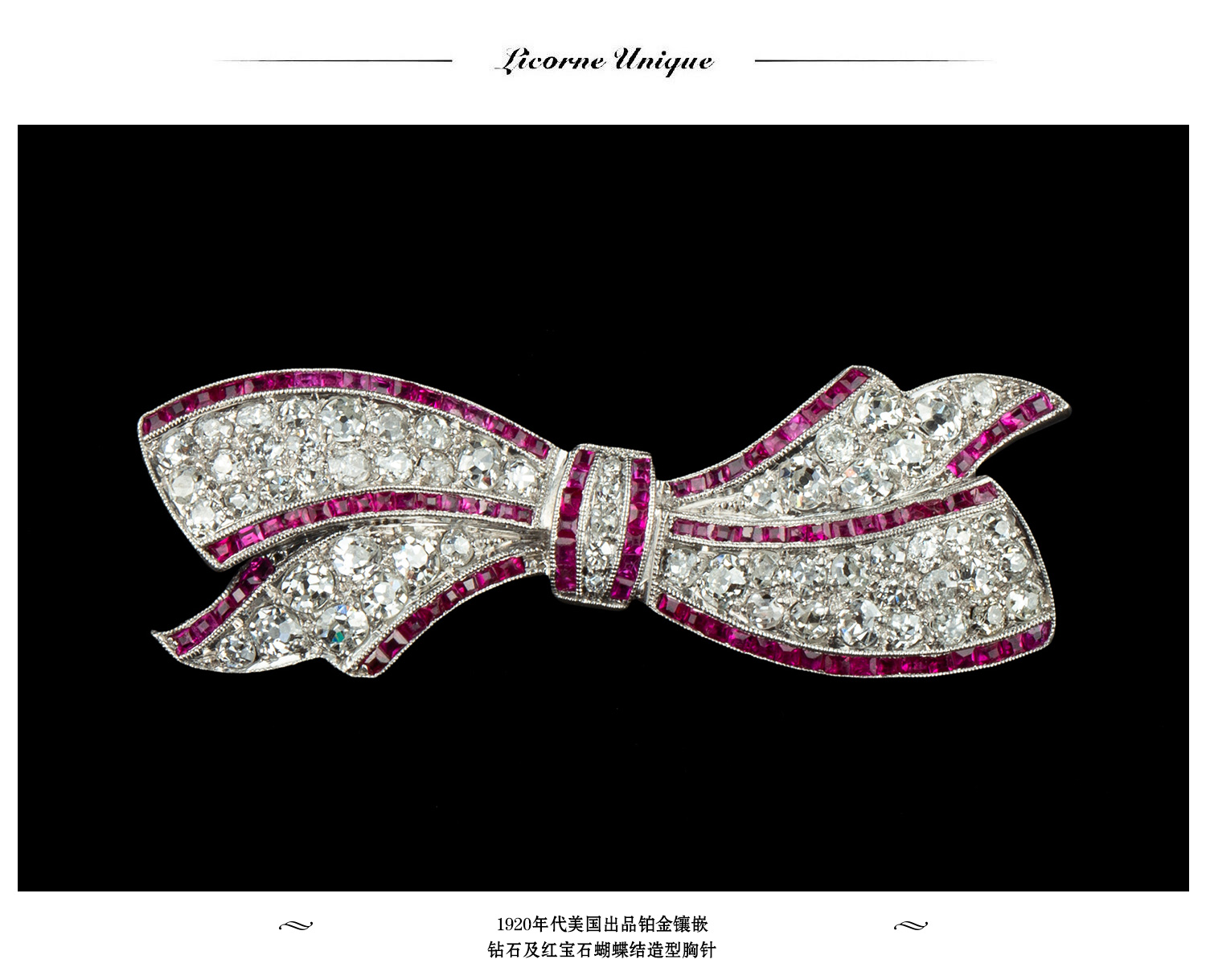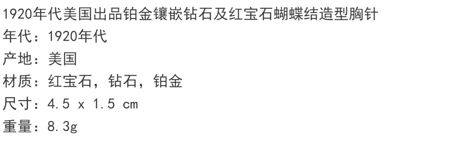 独角鹿西洋古董珠宝1920年代美国铂金镶嵌钻石红宝石蝴蝶结胸针