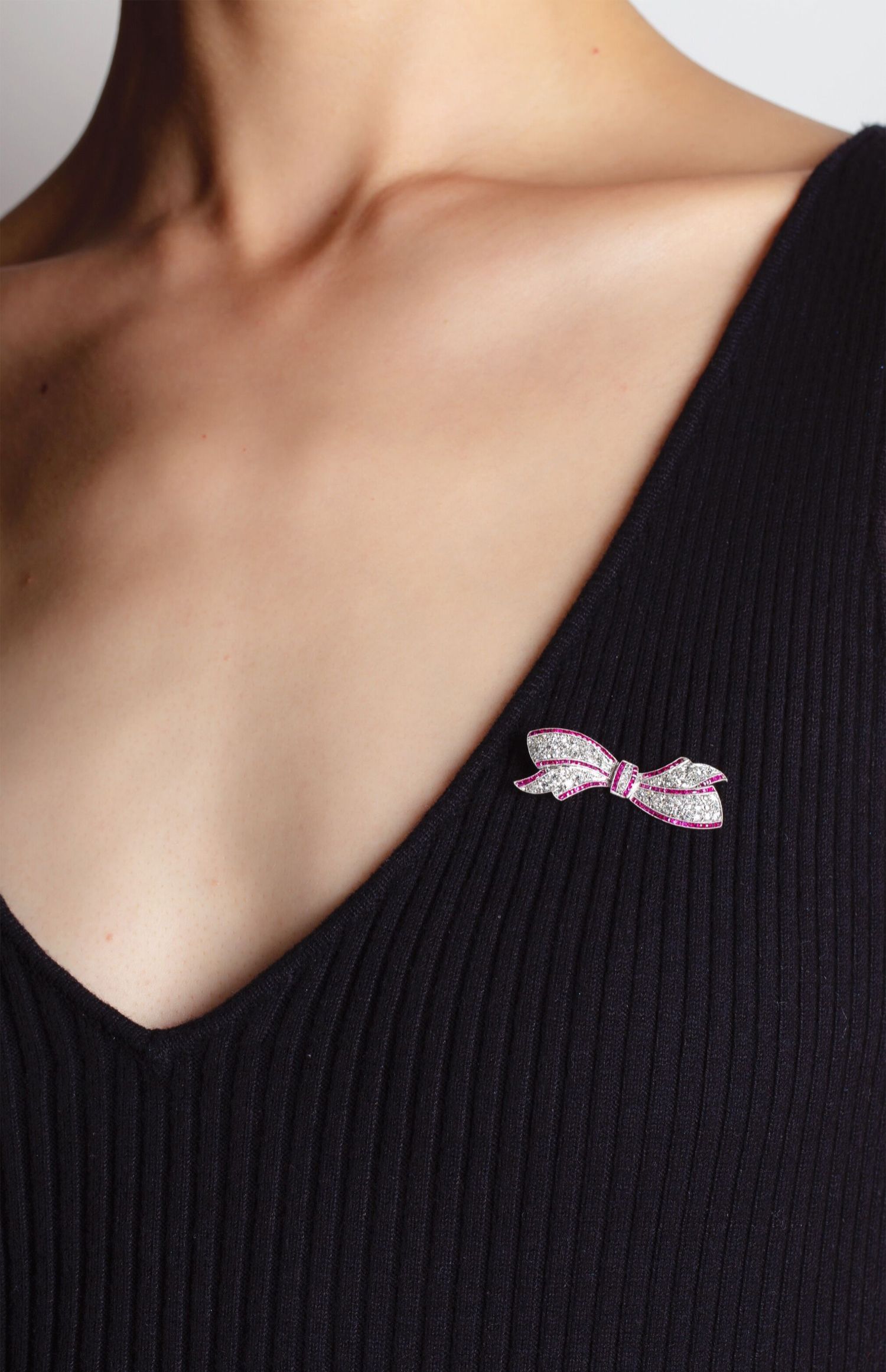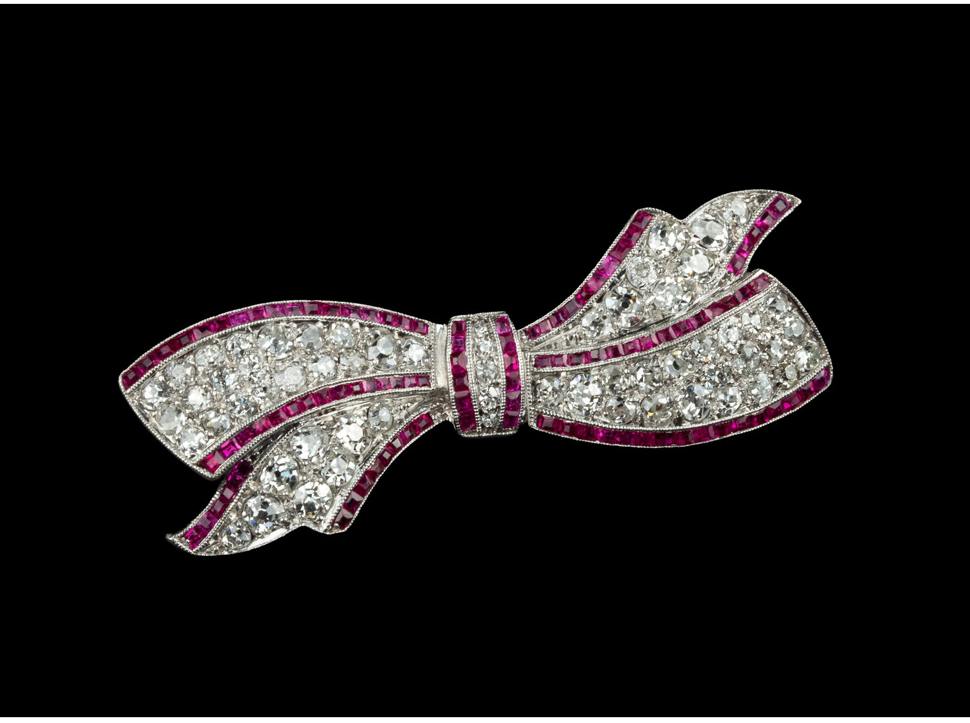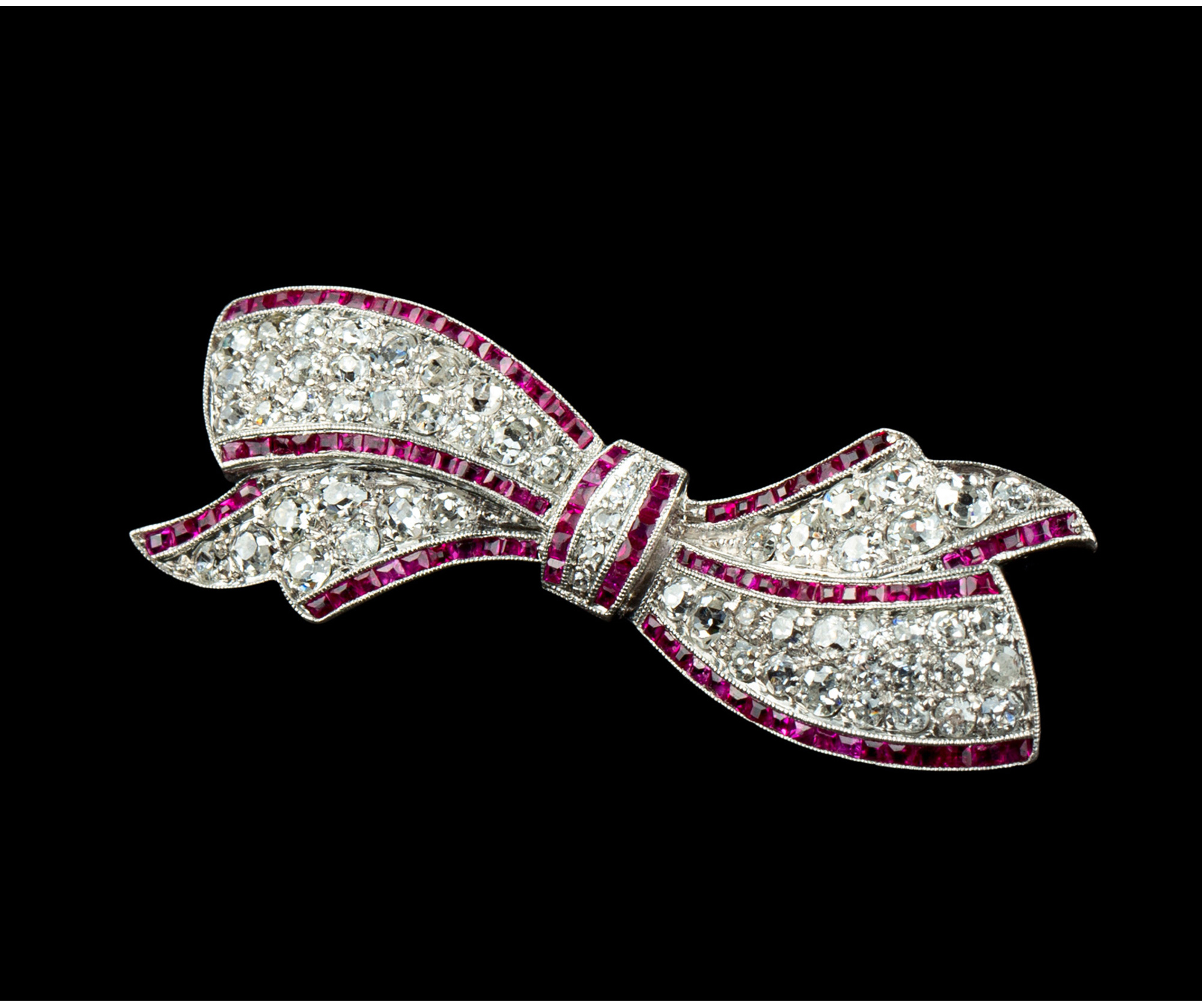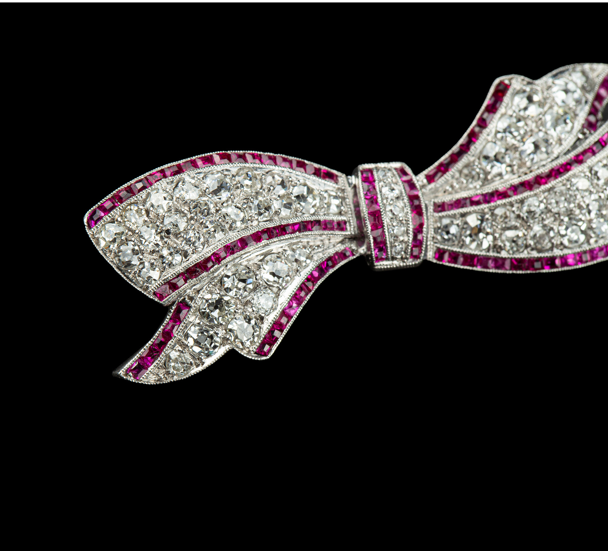 独角鹿西洋古董珠宝1920年代美国铂金镶嵌钻石红宝石蝴蝶结胸针