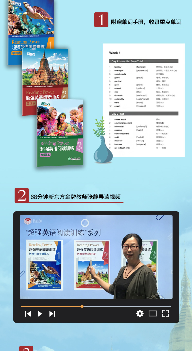 【新东方】chao强英语阅读训练1+2+3(共3本) 附单词手册