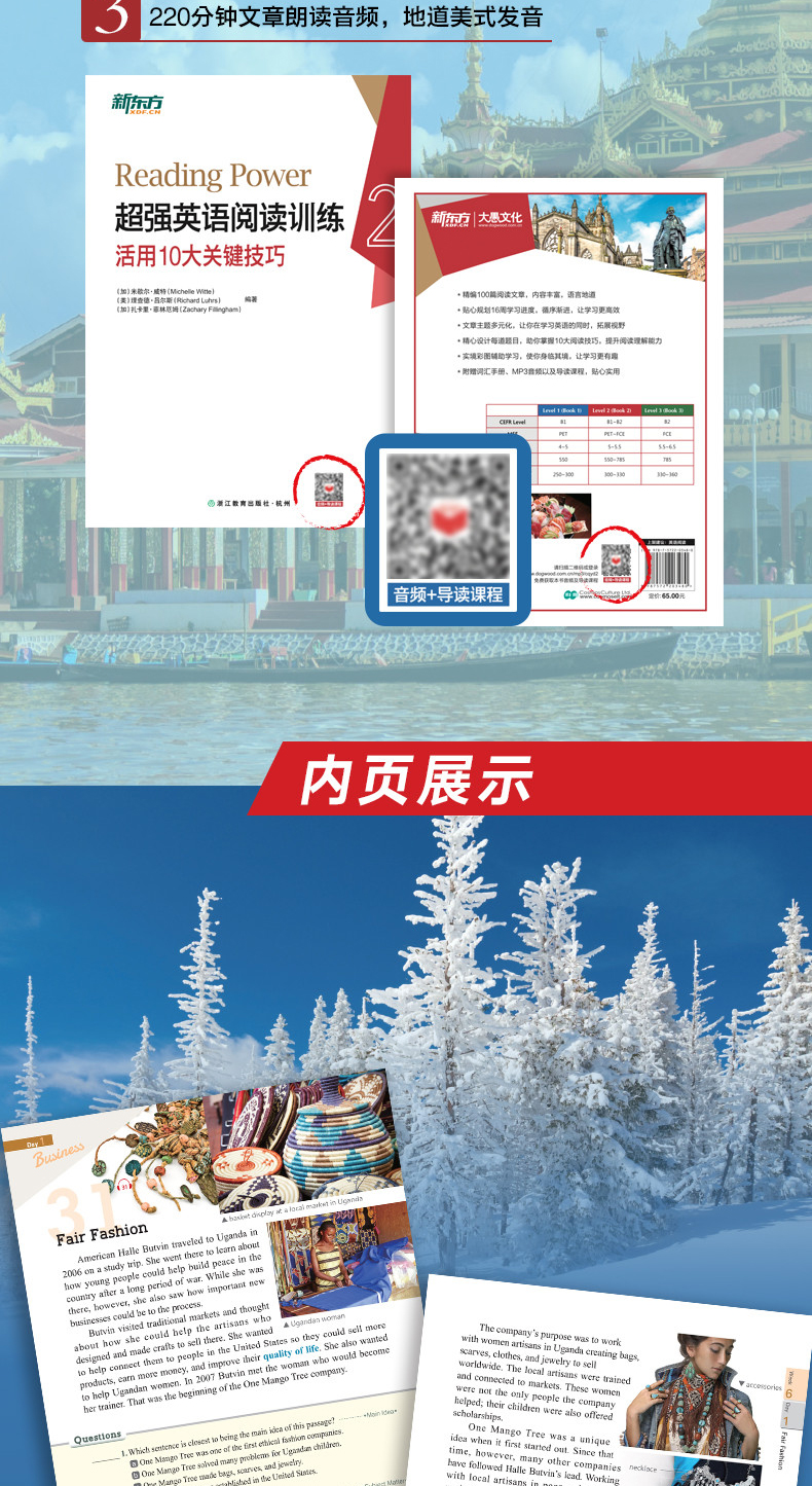 本书由100篇英语阅读文章构成,专注于英语阅读技巧的培养,提供了商业、文化、娱乐、科技等不同主题的丰富阅读材料。每篇阅读文章都配有精彩的图片以及精心设计的练习题目,涉及11项全方位的阅读技巧训练,以帮助读者提高阅读能力。全书内容共划分为16周,每周阅读文章6~7篇,能够帮助读者有计划的进行学习。此外,本书附赠单独的单词本,收录书中重点单词,方便读者随时随地使用。扫描封底或扉页二维码,即可免费获得本书音频及视频导读课程。