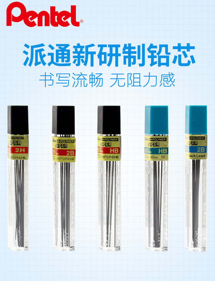 日本Pentel派通C505活动铅笔芯2B/2H/HB/0.5/0.7