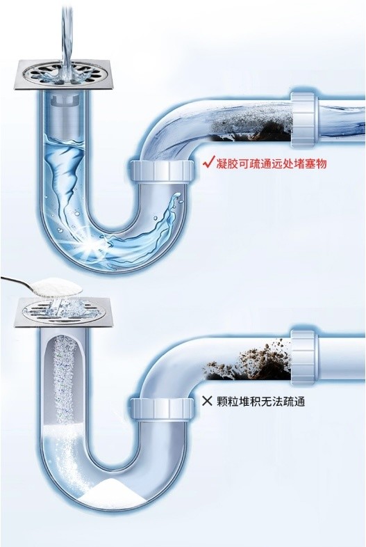 市面上一些产品无法根除管壁粘液,管道疏通后很容易再次堵塞。