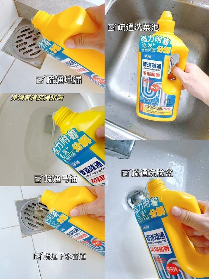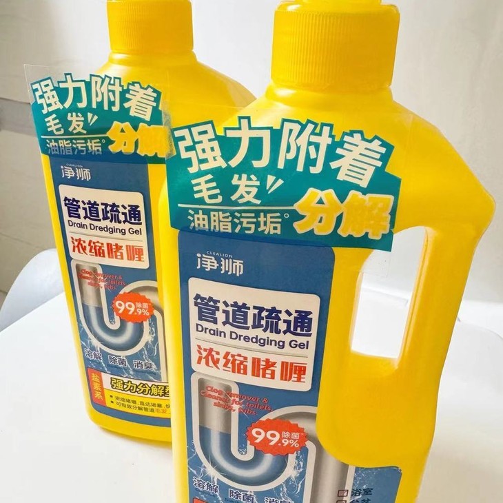 净狮采用流动性强的高浓缩液体,浓稠的液体有利于全面附着堵塞物,超强分解污垢,轻松疏通管道!