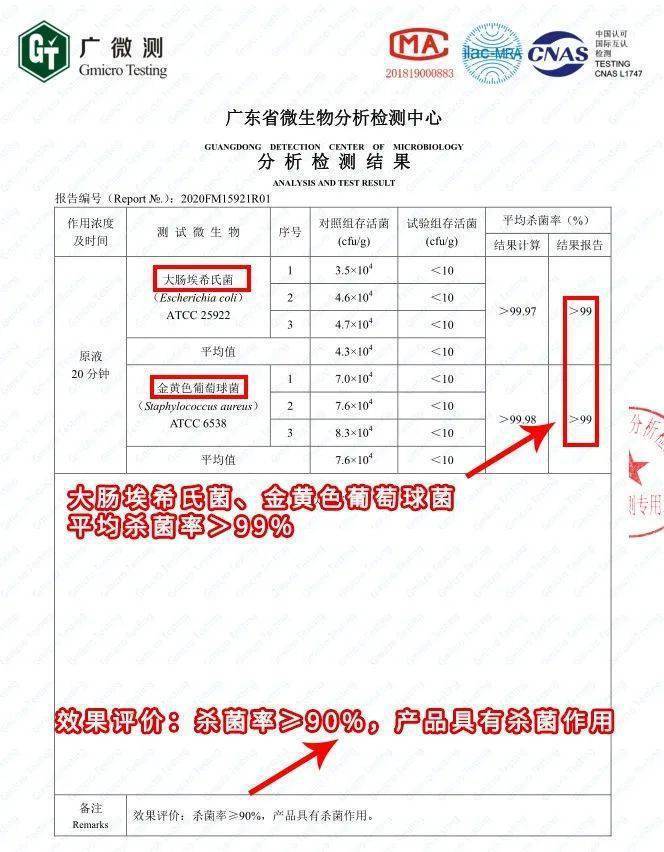 已通过权威机构检测认证,常见的大肠杆菌、黑曲霉菌等杀菌率高达99.98%!