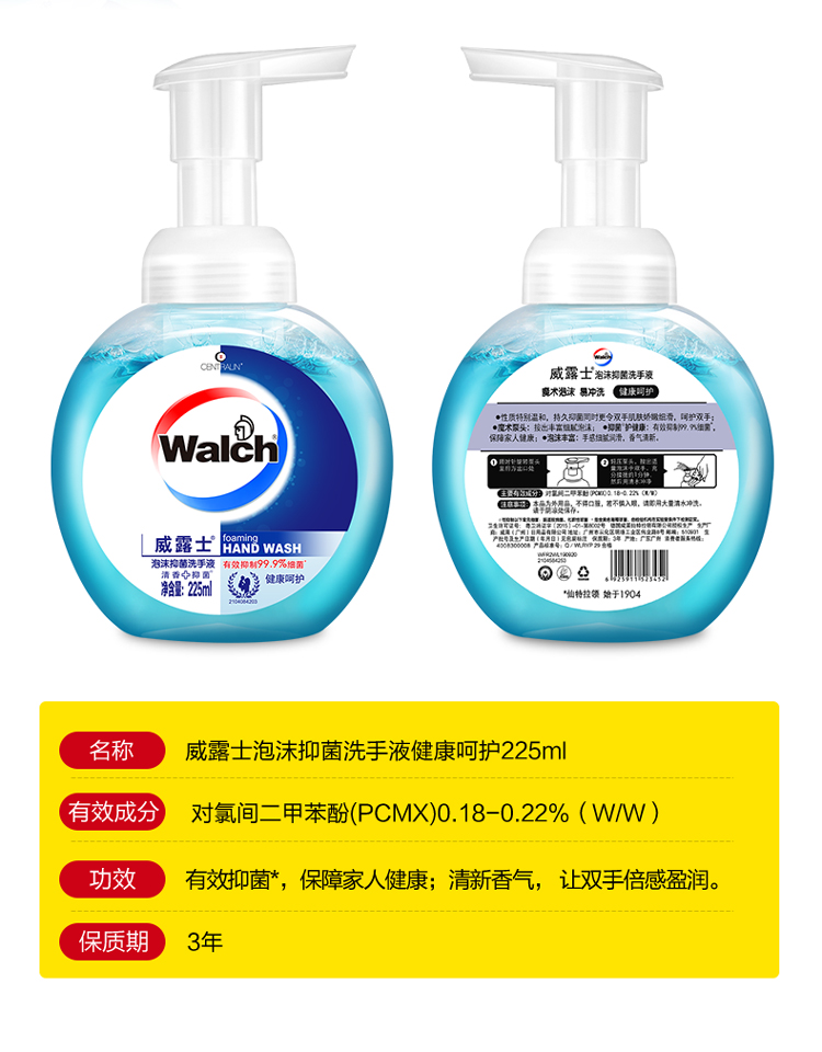 威露士泡沫洗手液健康呵护225ml(原味)