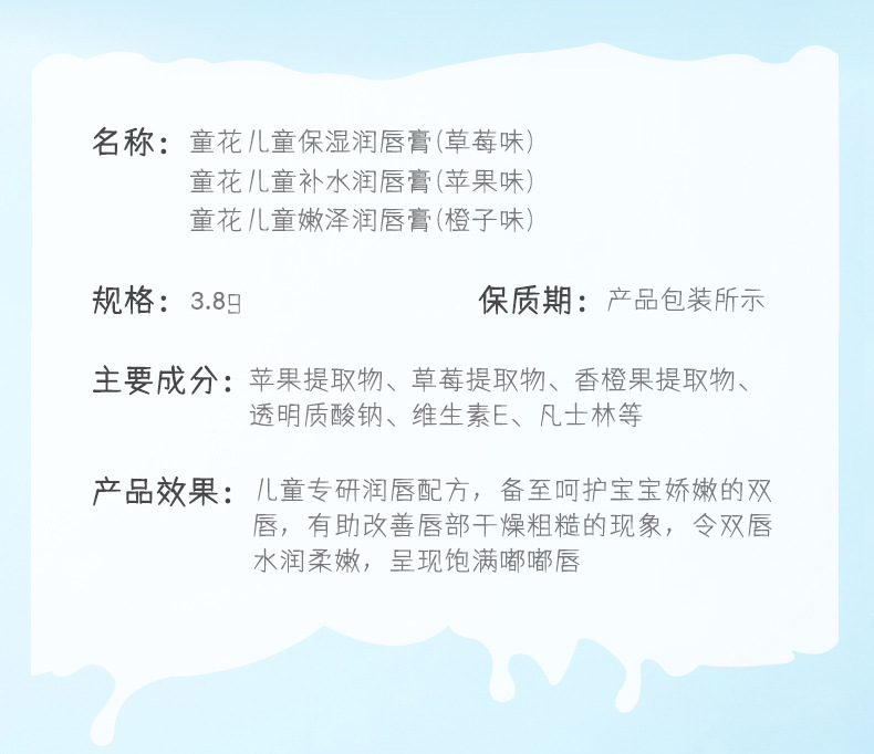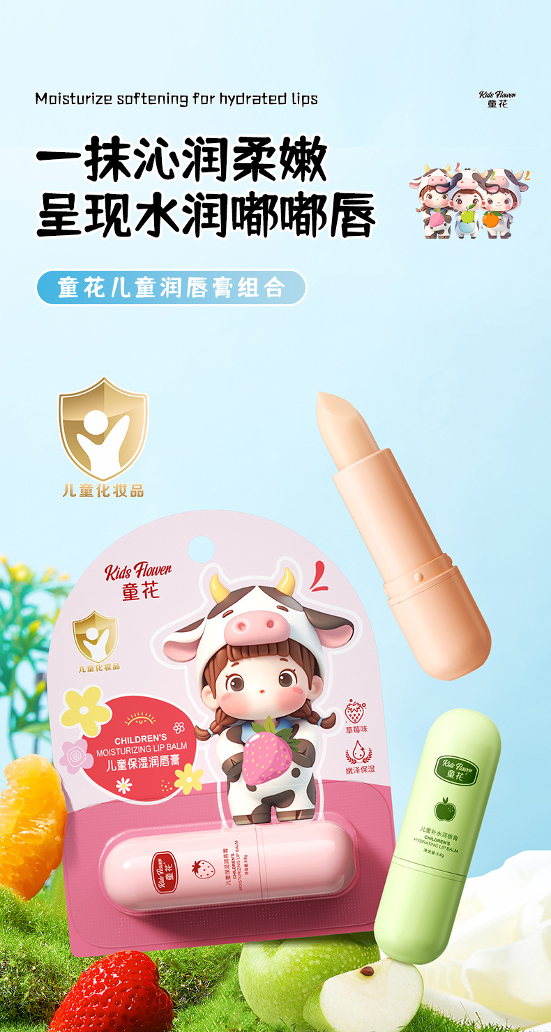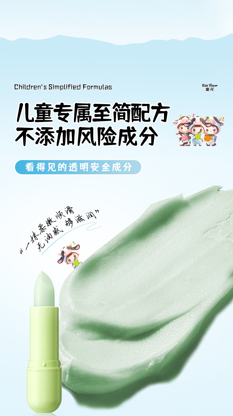 【一抹沁润柔嫩,呈现水润嘟嘟唇~】童花儿童嫩泽润唇膏滋润 补水秋冬唇部护理 防冻防干裂 无色润唇膏-QQ