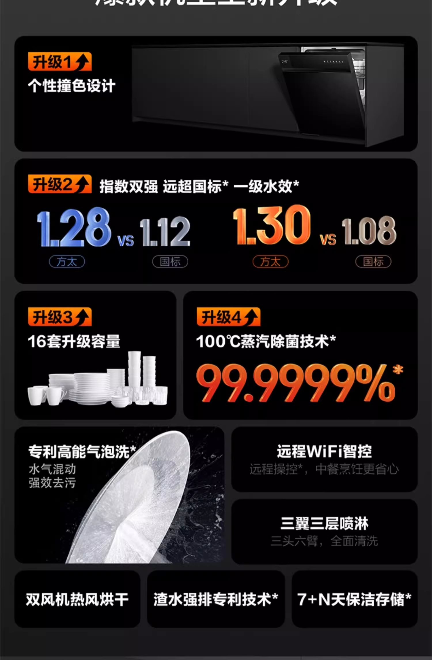 方太嵌入式洗碗机V6版全自动家用15套洗锅大容量智能洗碗机