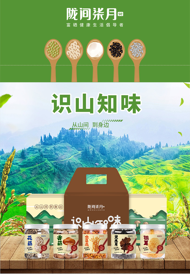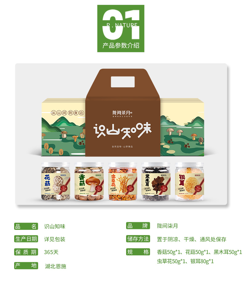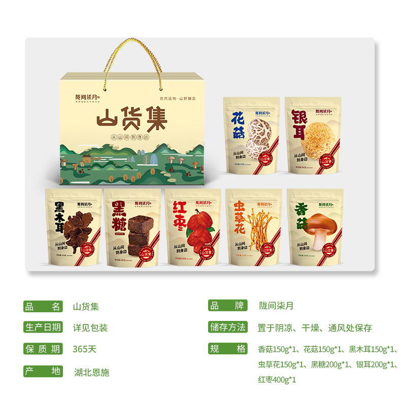 恩施 陇间柒月 识山知味礼盒(香菇50g、花菇50g、黑木耳50g、虫草花50g、银耳80g)