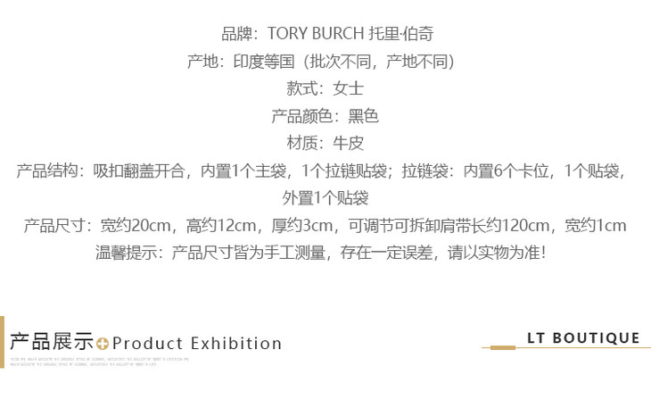 TORY BURCH 托里·伯奇 TB女包 MCGRAW系列黑色牛皮单肩斜挎手拿包 53043 001