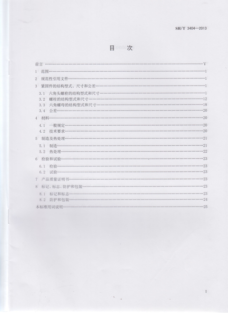 石油化工钢制管法兰用紧固件SH/T 3404-2013