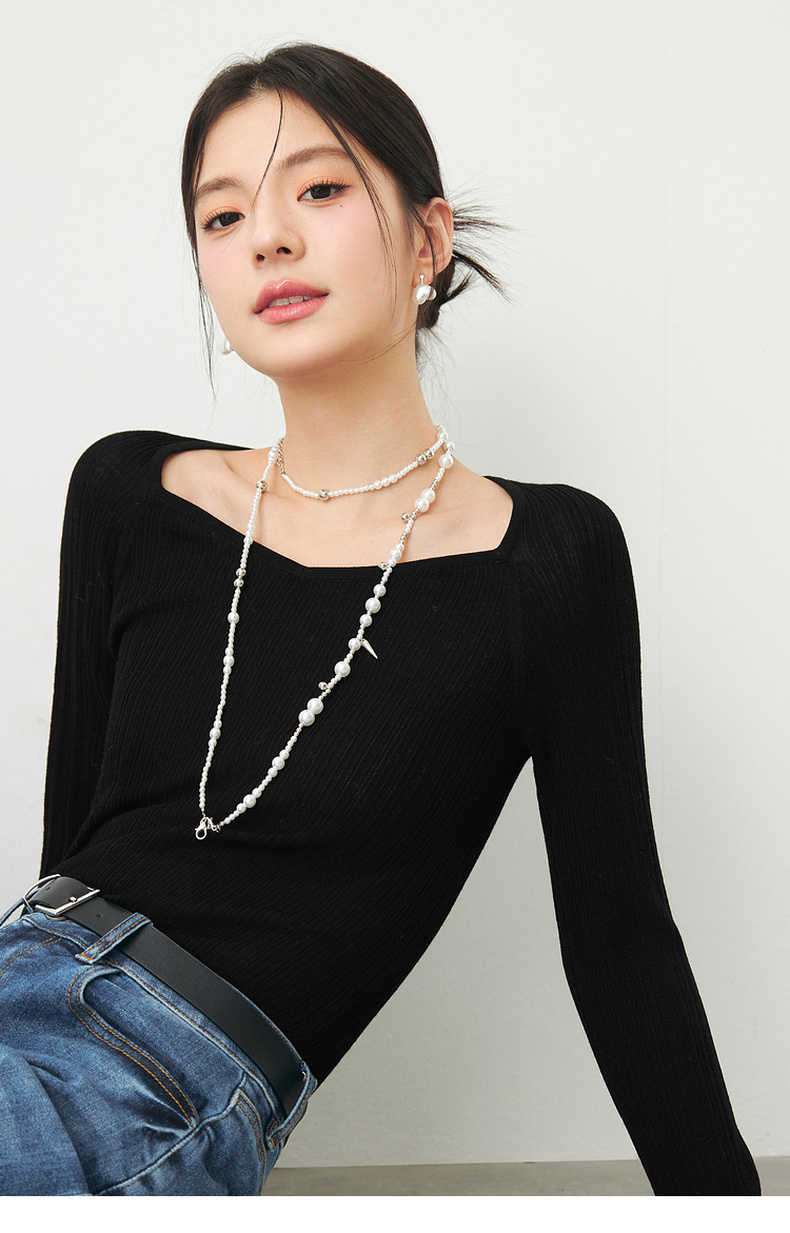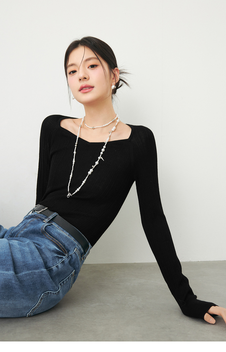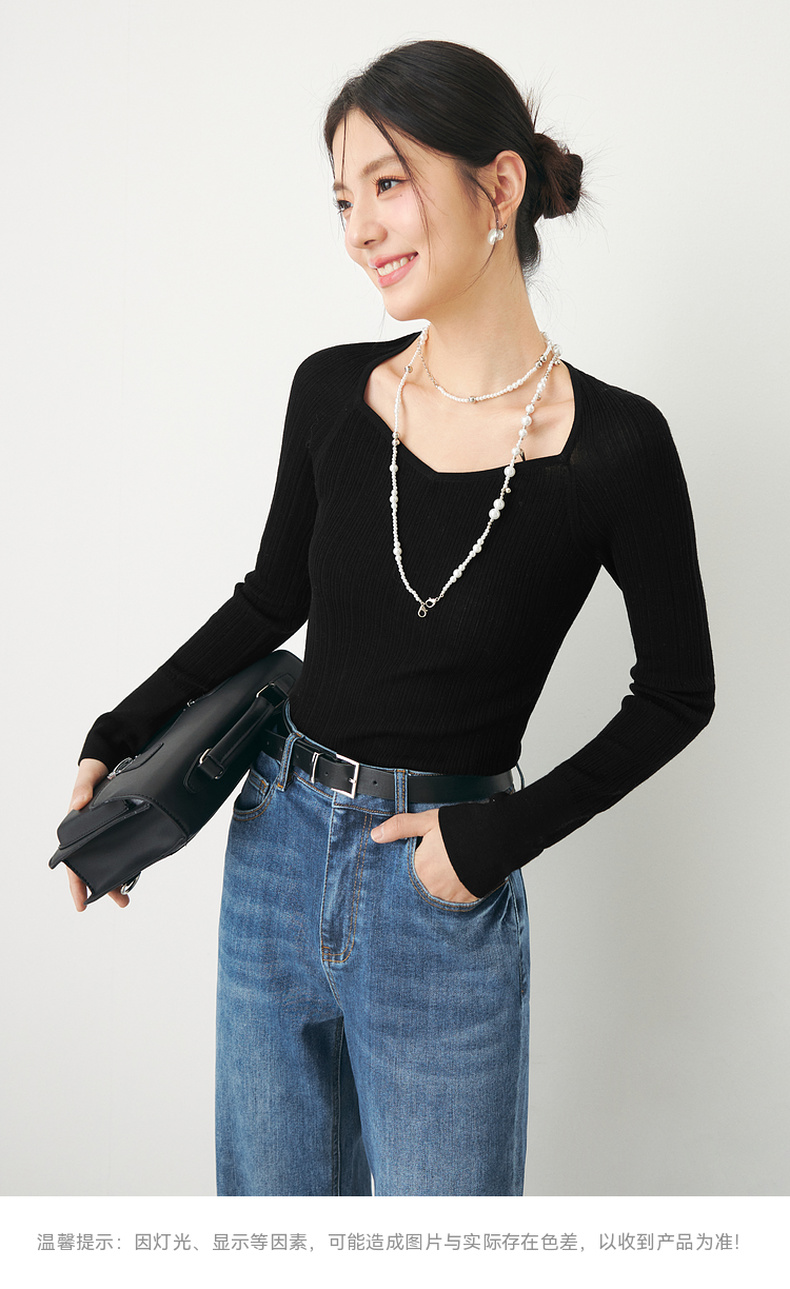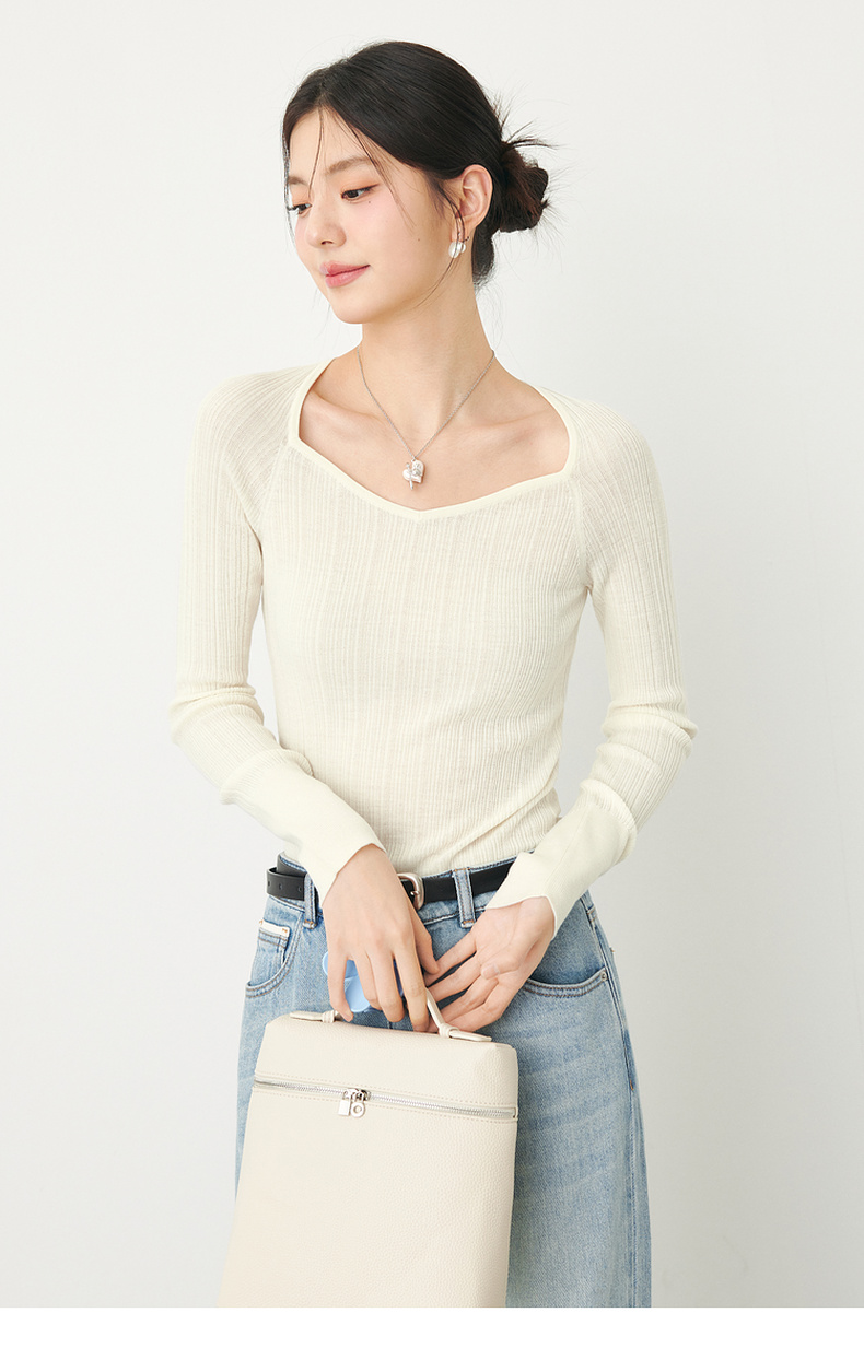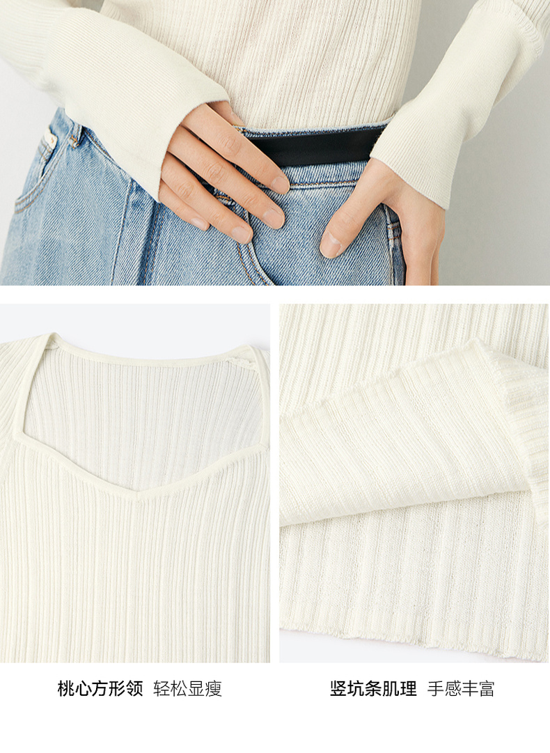 【严选】诗凡黎春桃心方领修身打底衫SF3130581