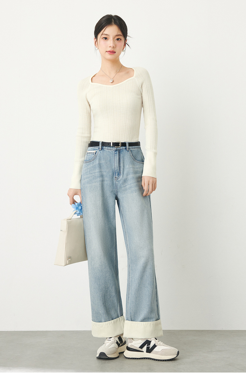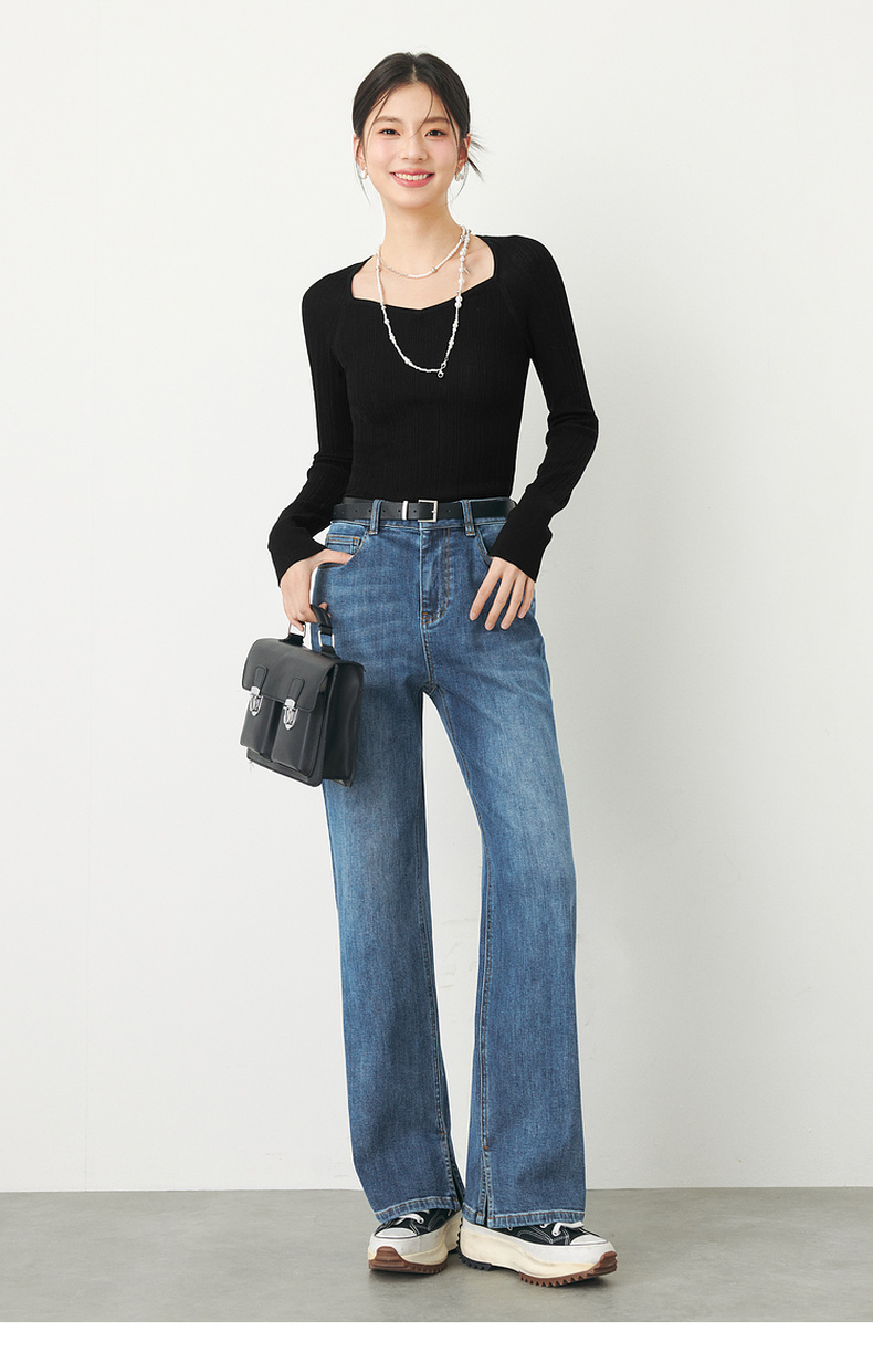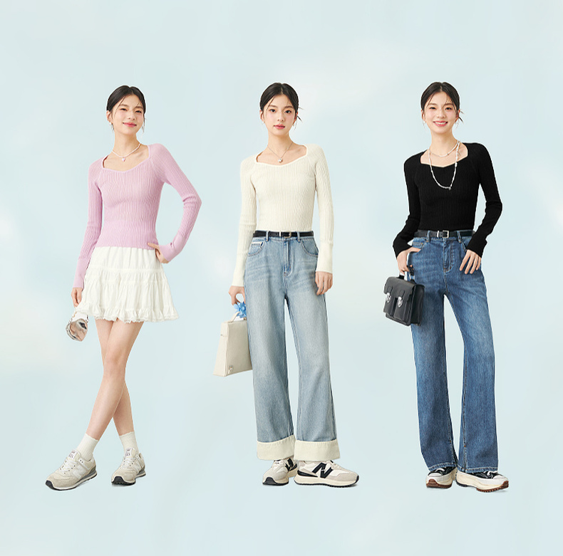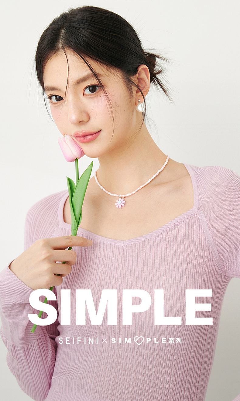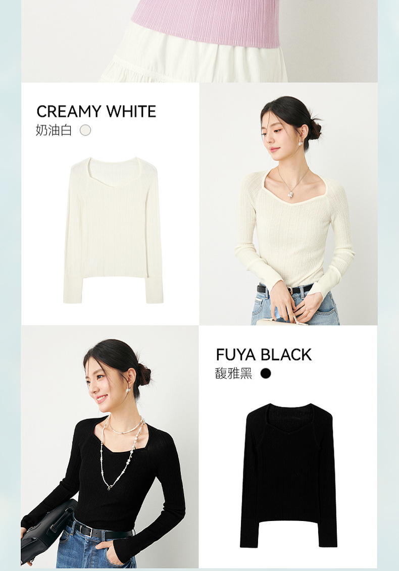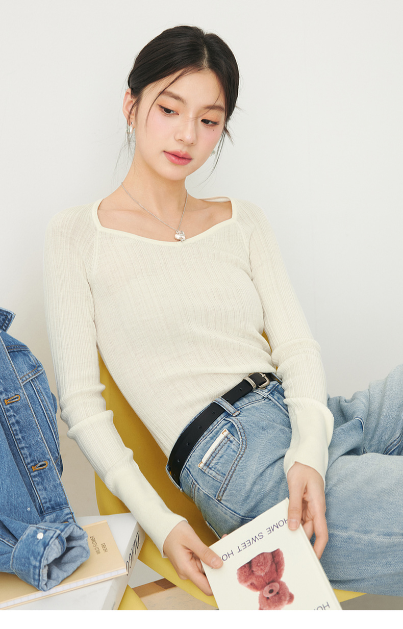【严选】诗凡黎春桃心方领修身打底衫SF3130581