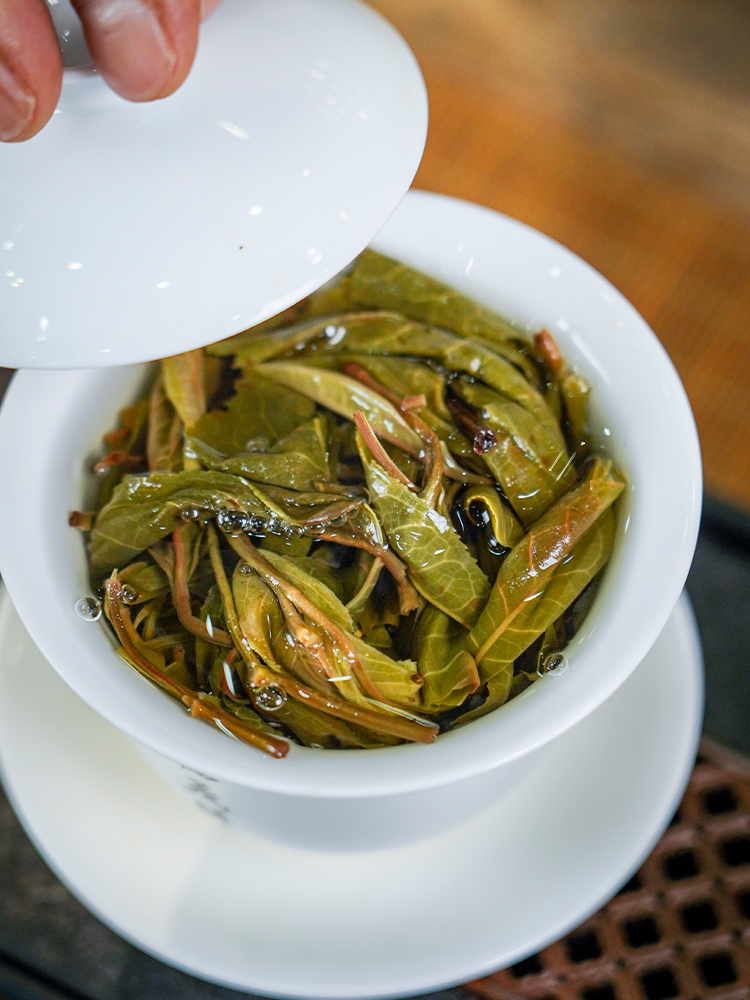 它的口腔留存度也高,就算是新茶,余韵也很长,茶香混着清甜,越品越有味道。品鉴的时候,能尝到野兰香混着果木香,入口还有很明显的高山韵,喝一口就特别满足;茶汤丝滑入喉,舌底和两颊慢慢就开始生津,茶气和茶韵灌满整个口腔,喝完之后,嘴里还留着清甜和茶香,回味无穷,越喝越爱!