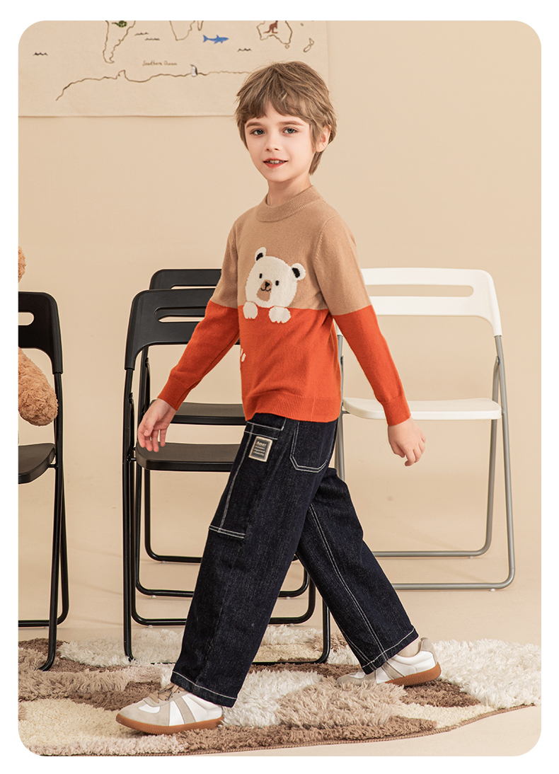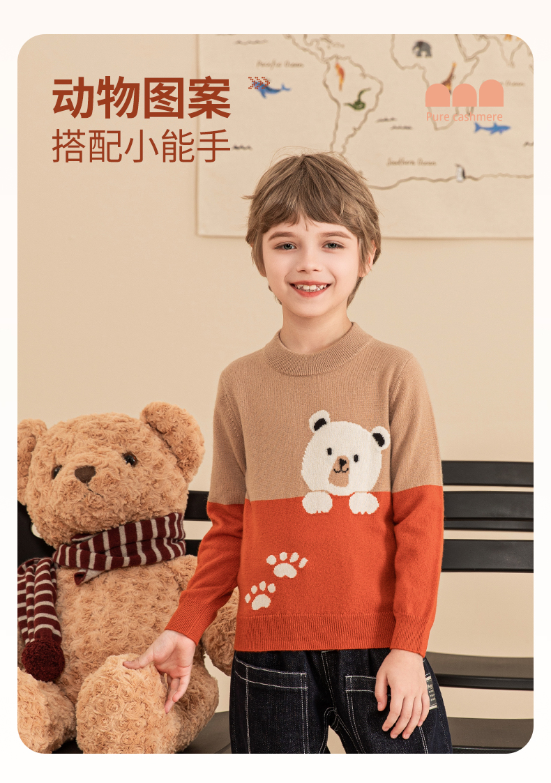 mettekids男童羊绒衫2023秋冬新款儿童休闲毛衣中大童卡通针织衫