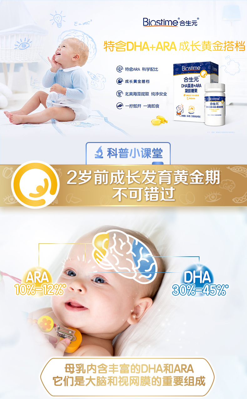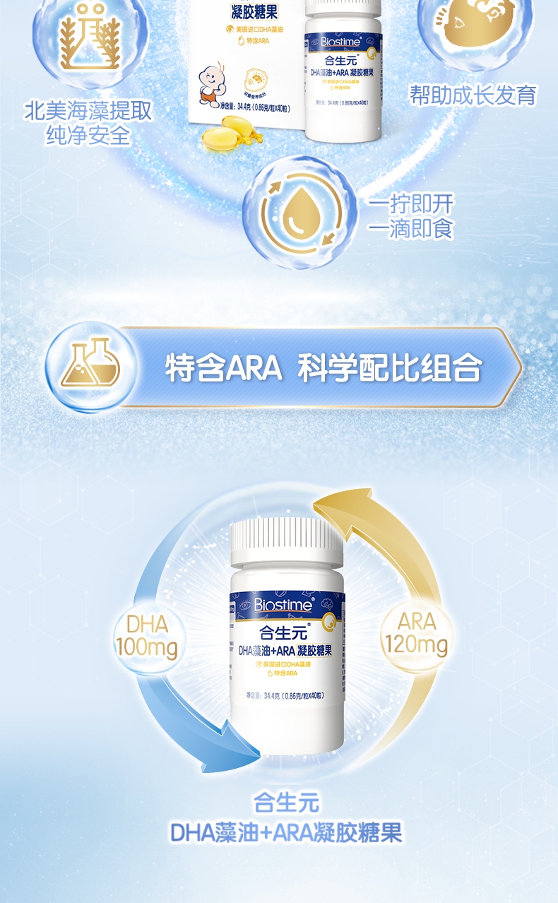 合生元DHA藻油40粒滴剂特含ARA凝胶糖果儿童孕妇/HSY-200579