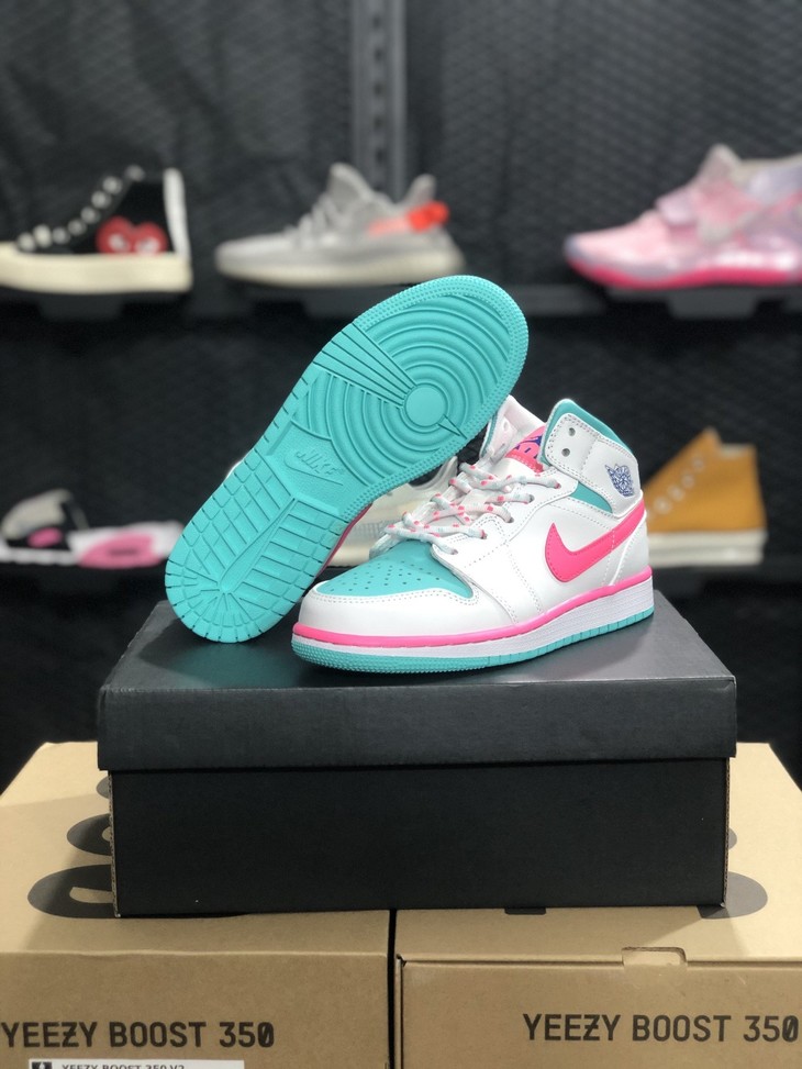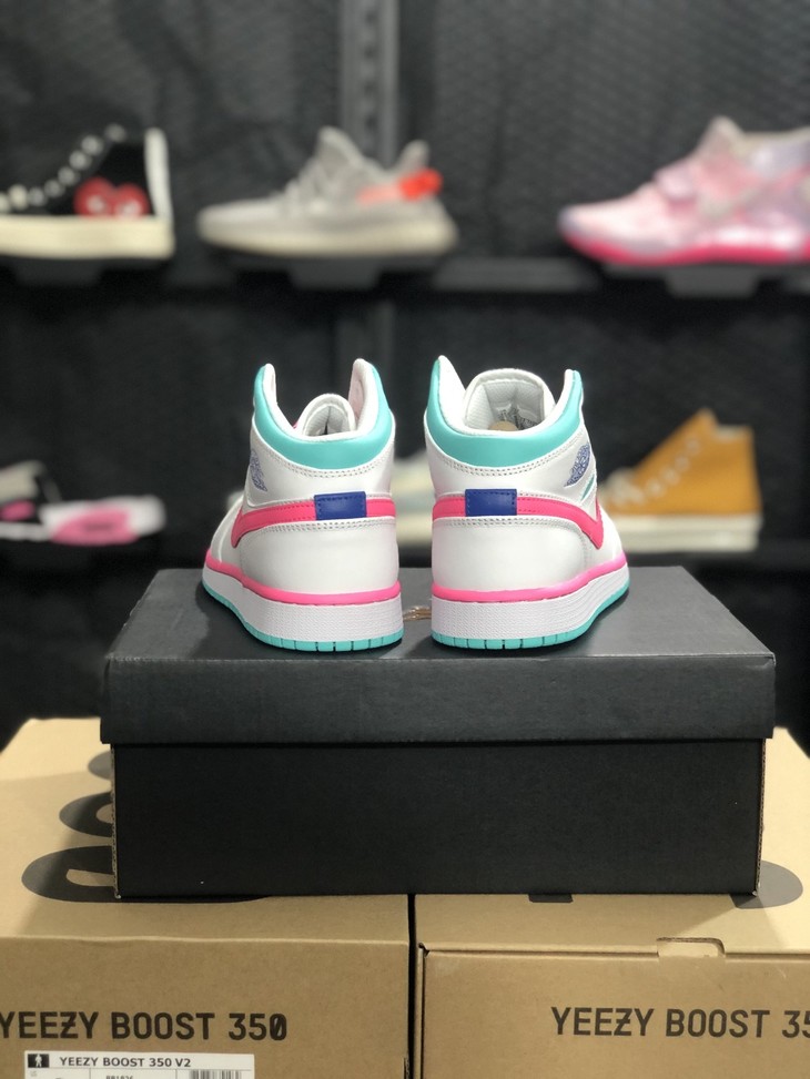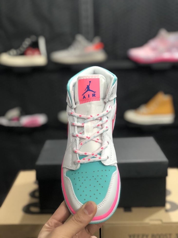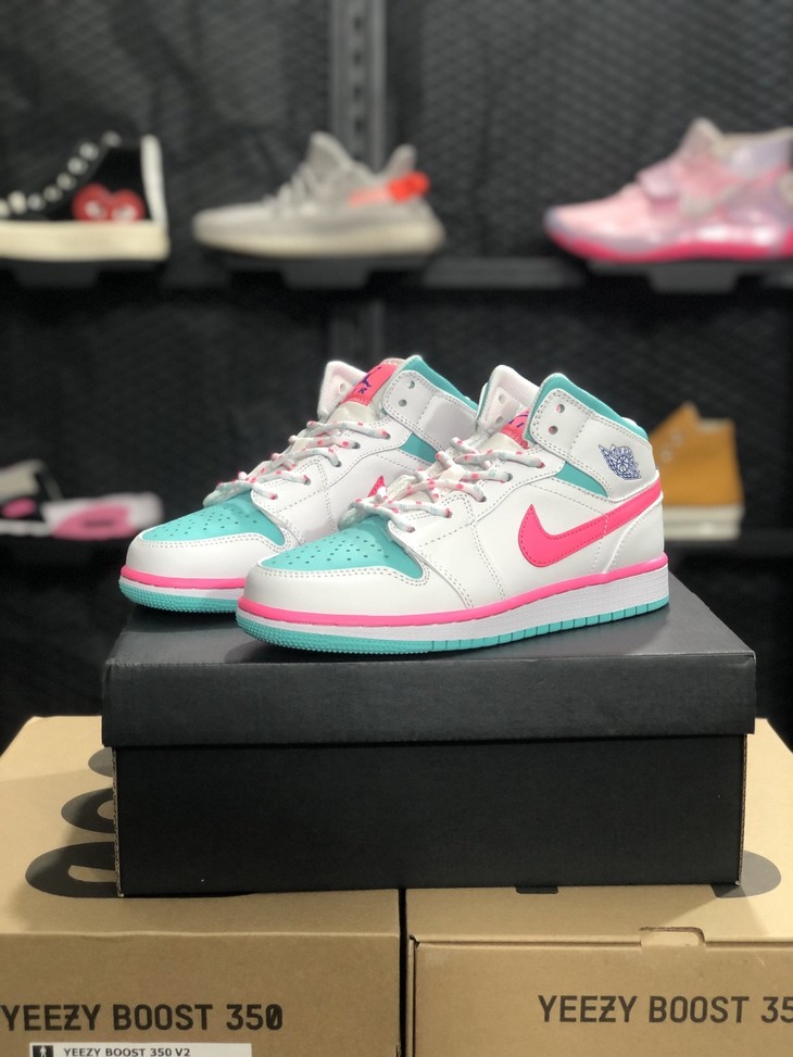 清新春日气息,全新耐克Nike Air Jordan 1 Mid GS"Digital Pink"AJ1乔丹一代中帮经典复古文化休闲运动篮球鞋“ 南海岸绿粉蒂芙尼”555112-102 男女鞋 气垫