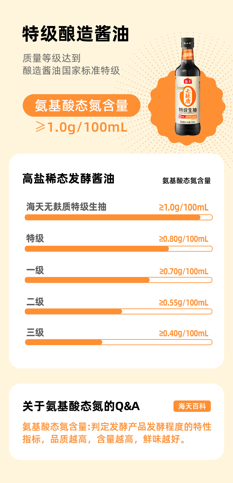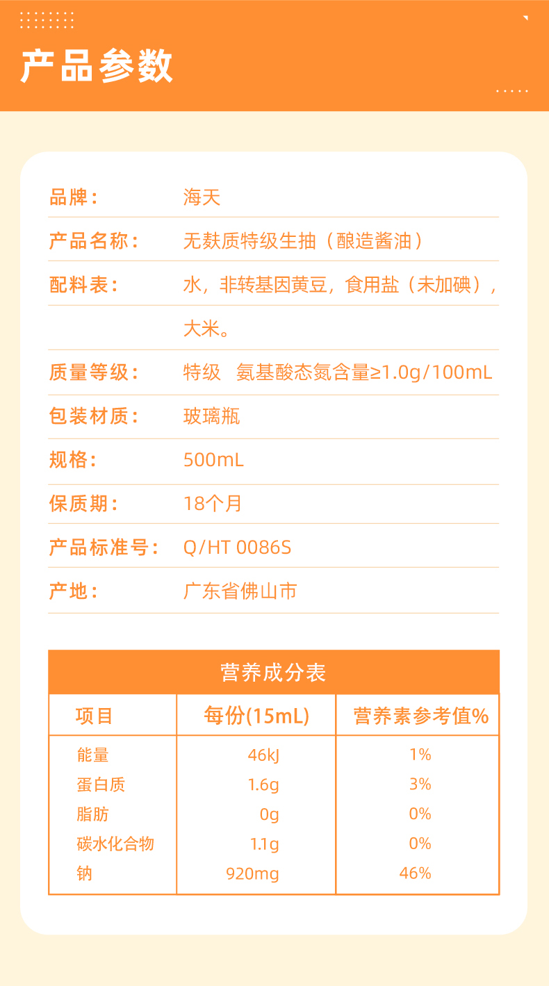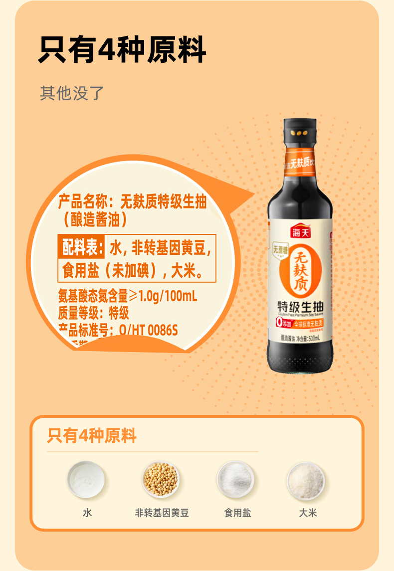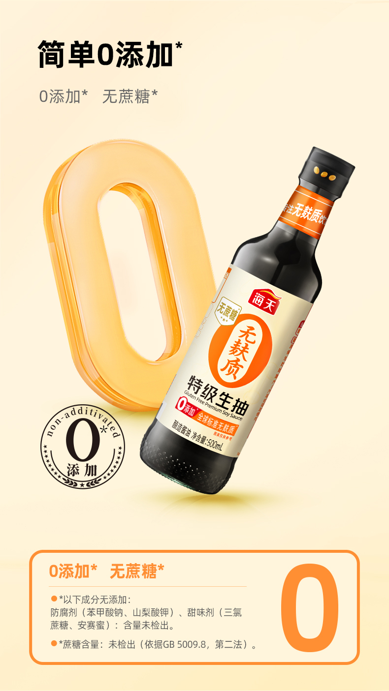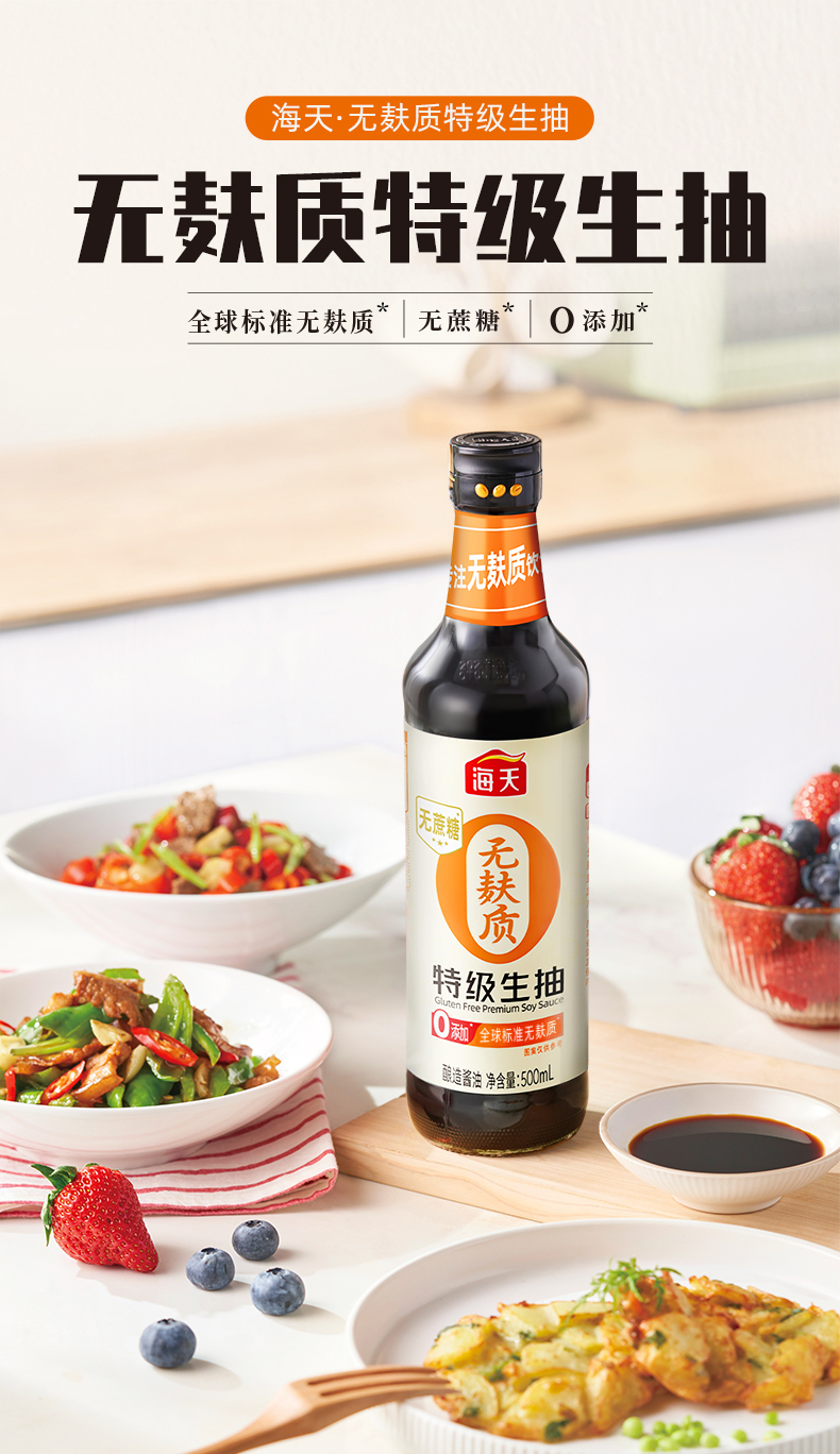 【预售】海天 无麸质特级生抽酱油500ml 无蔗糖0添加 家用调味凉拌炒菜 7天内发货