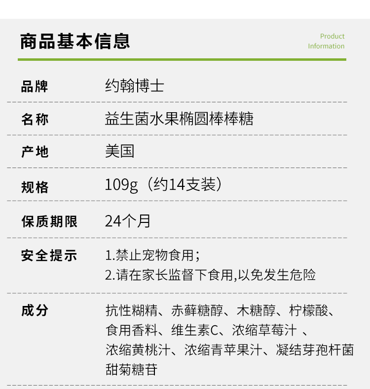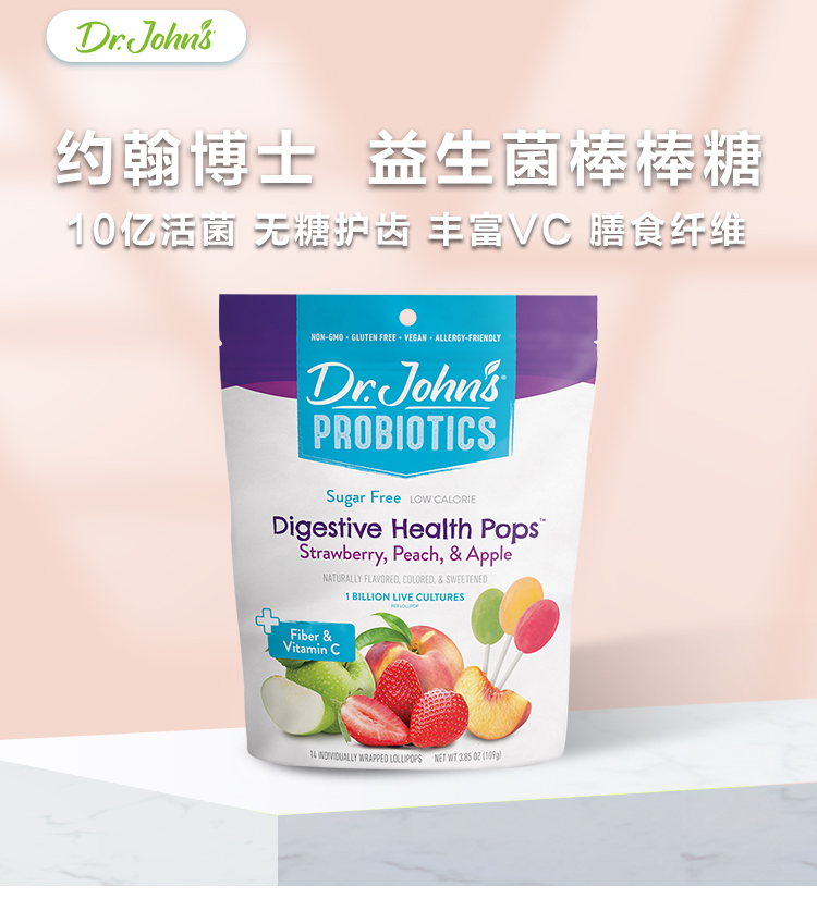 美国Dr.John's约翰博士 儿童零食 | 益生菌水果椭圆棒棒糖 | 2岁+