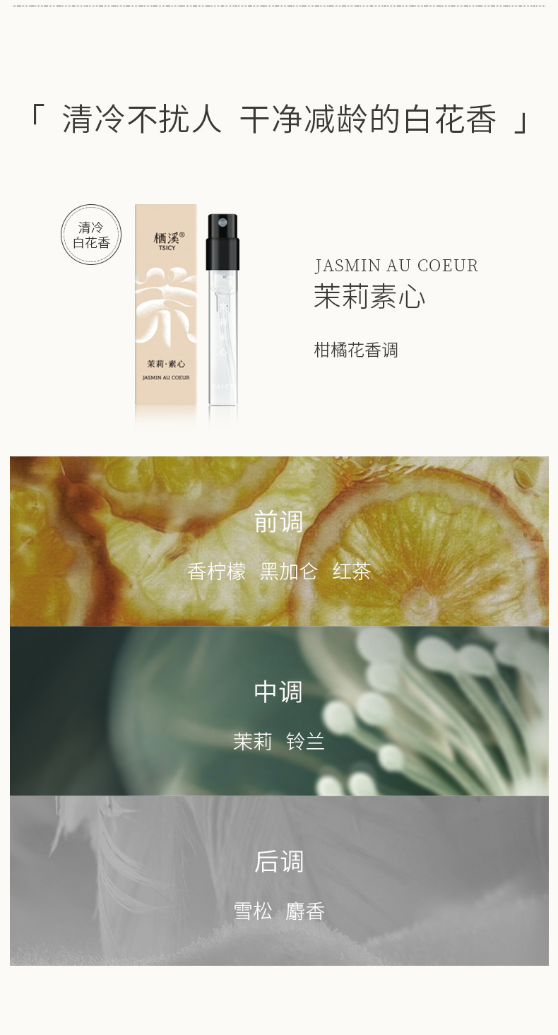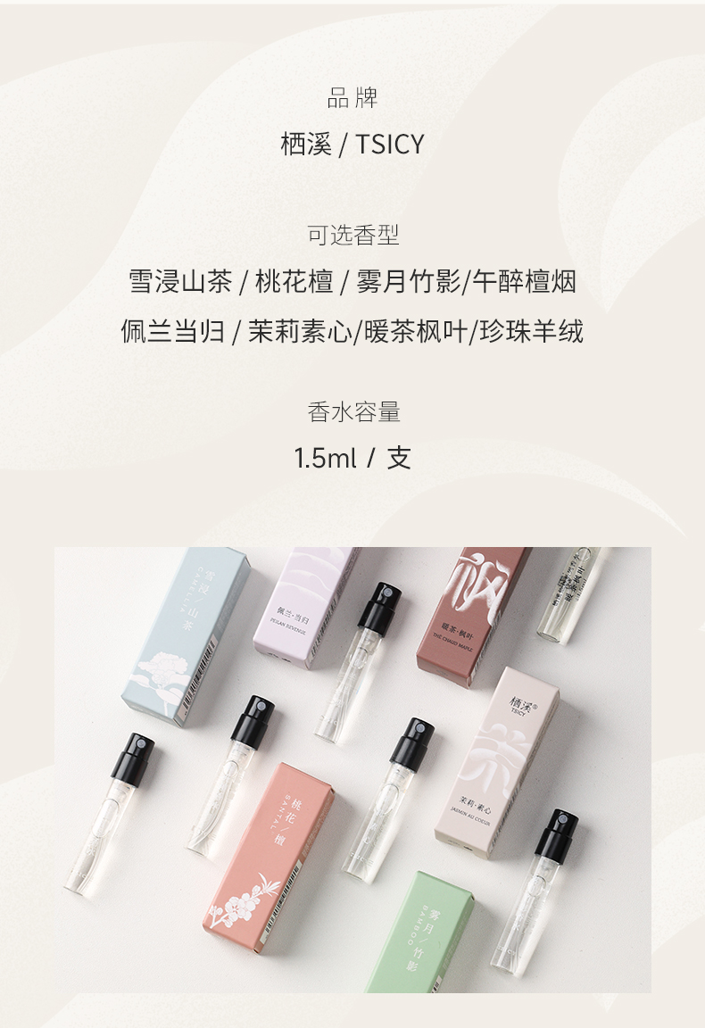 【栖溪试香推荐】茉莉素心 雪浸山茶雾月竹影佩兰当归 桃花檀枫叶午醉羊绒试香1.5ml
