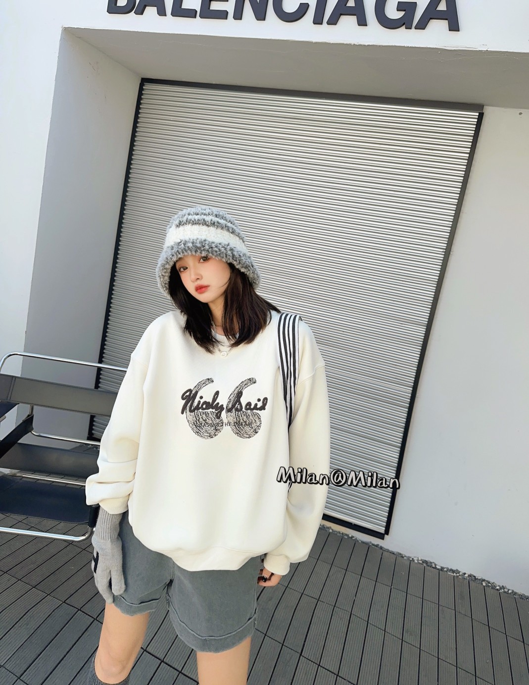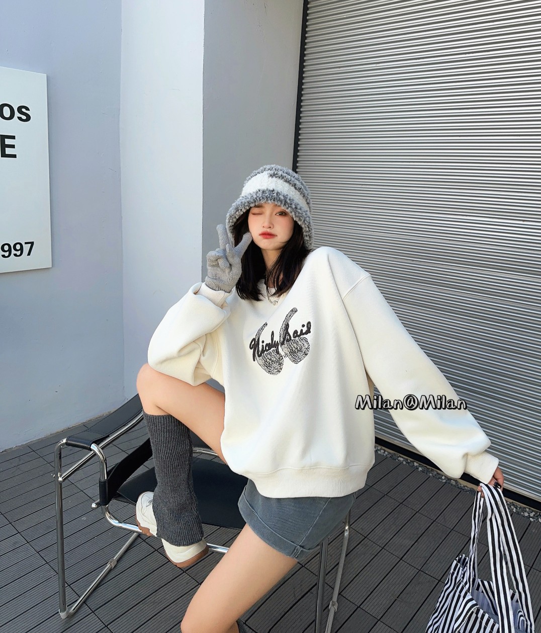 69-63 # 黑 米白 均码 印花加绒圆领卫衣 穿起来真的超级好看 而且百搭 可以搭配各种风格的衣物 轻松驾驭各种场合