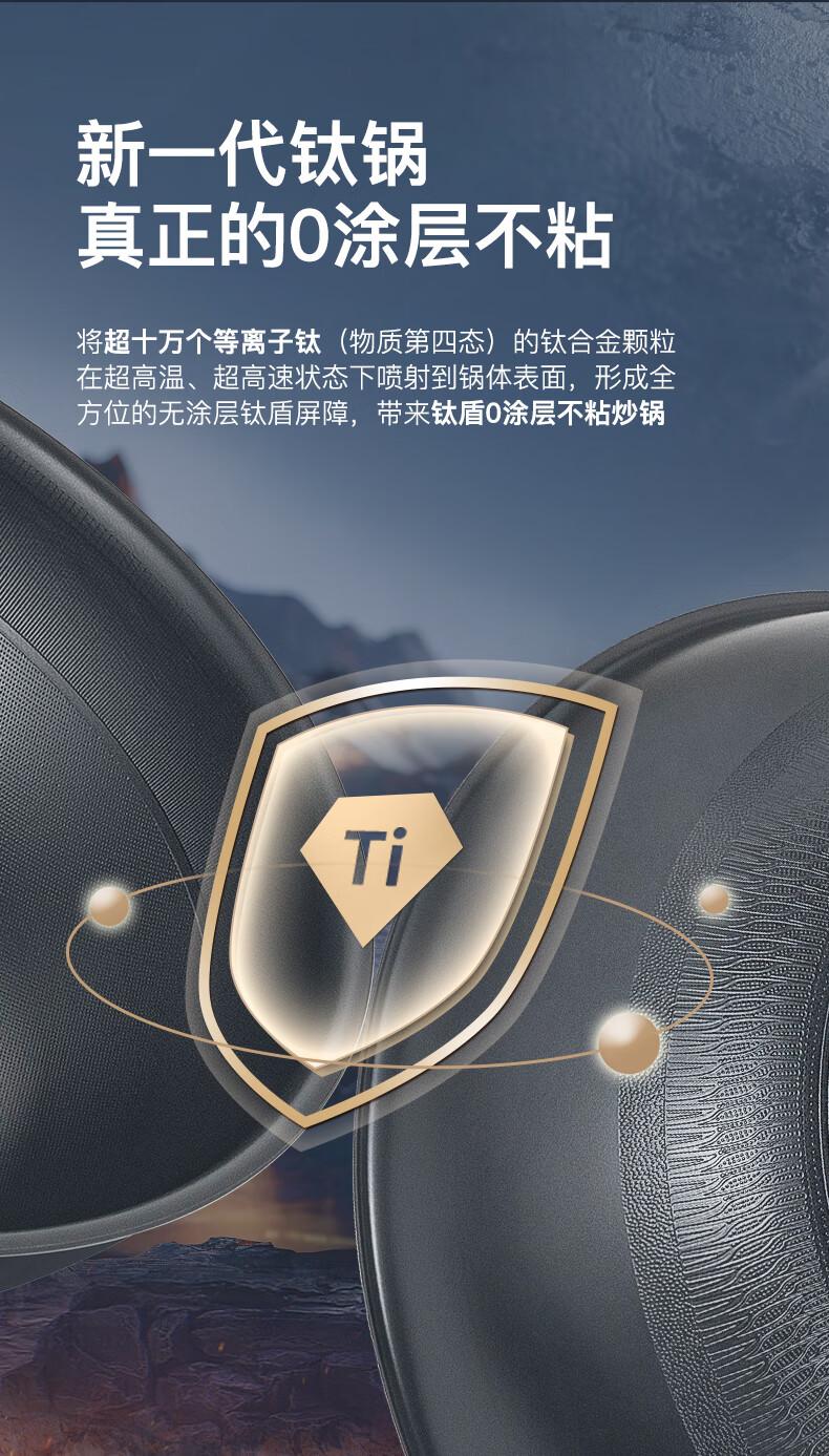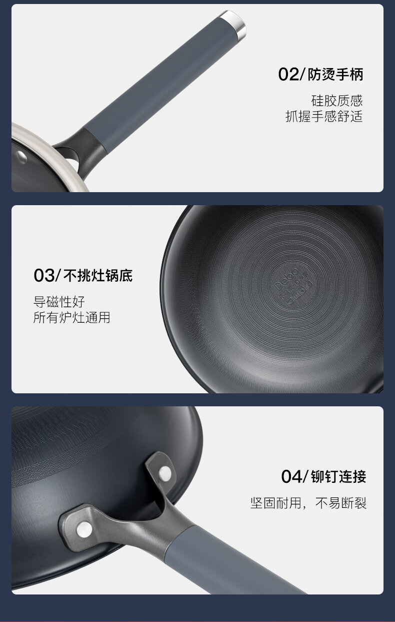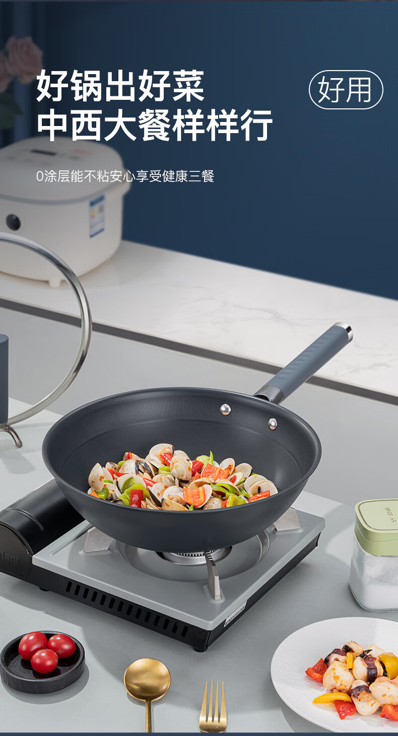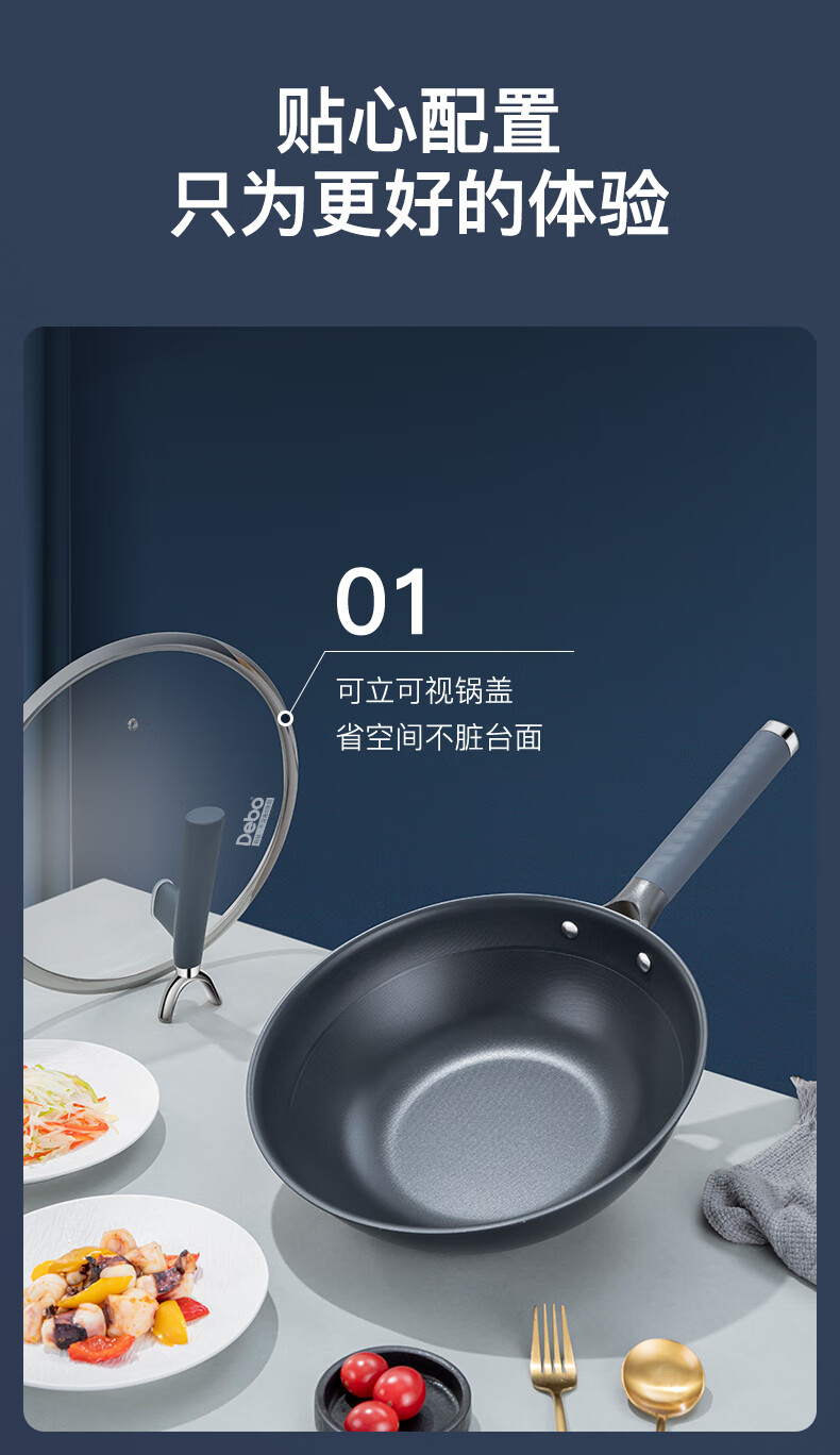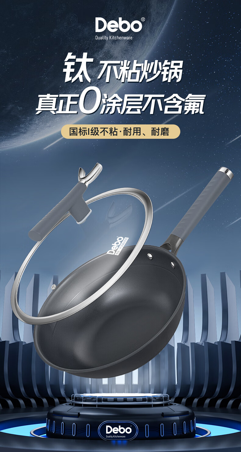 Debo德铂无涂层不粘炒锅无油烟有钛锅锅具