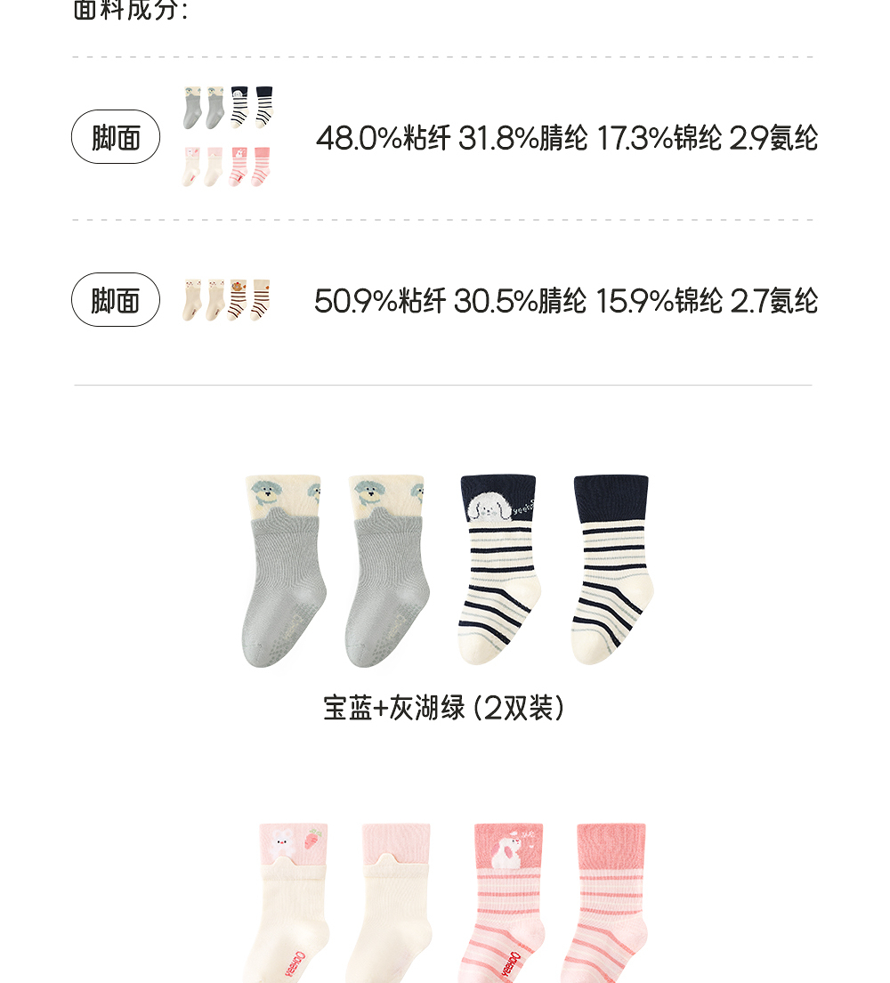英氏婴儿袜子7A抗菌发热纱秋冬款保暖不勒腿儿童短袜YIWCJ4R171A