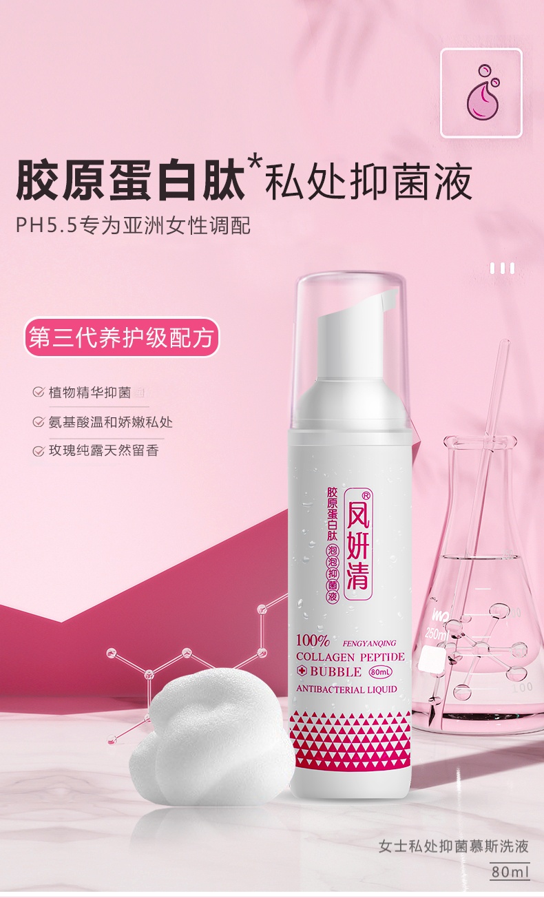 【女性私处洗液】凤妍清胶原蛋白肽抑菌私护洗液 80ml/盒