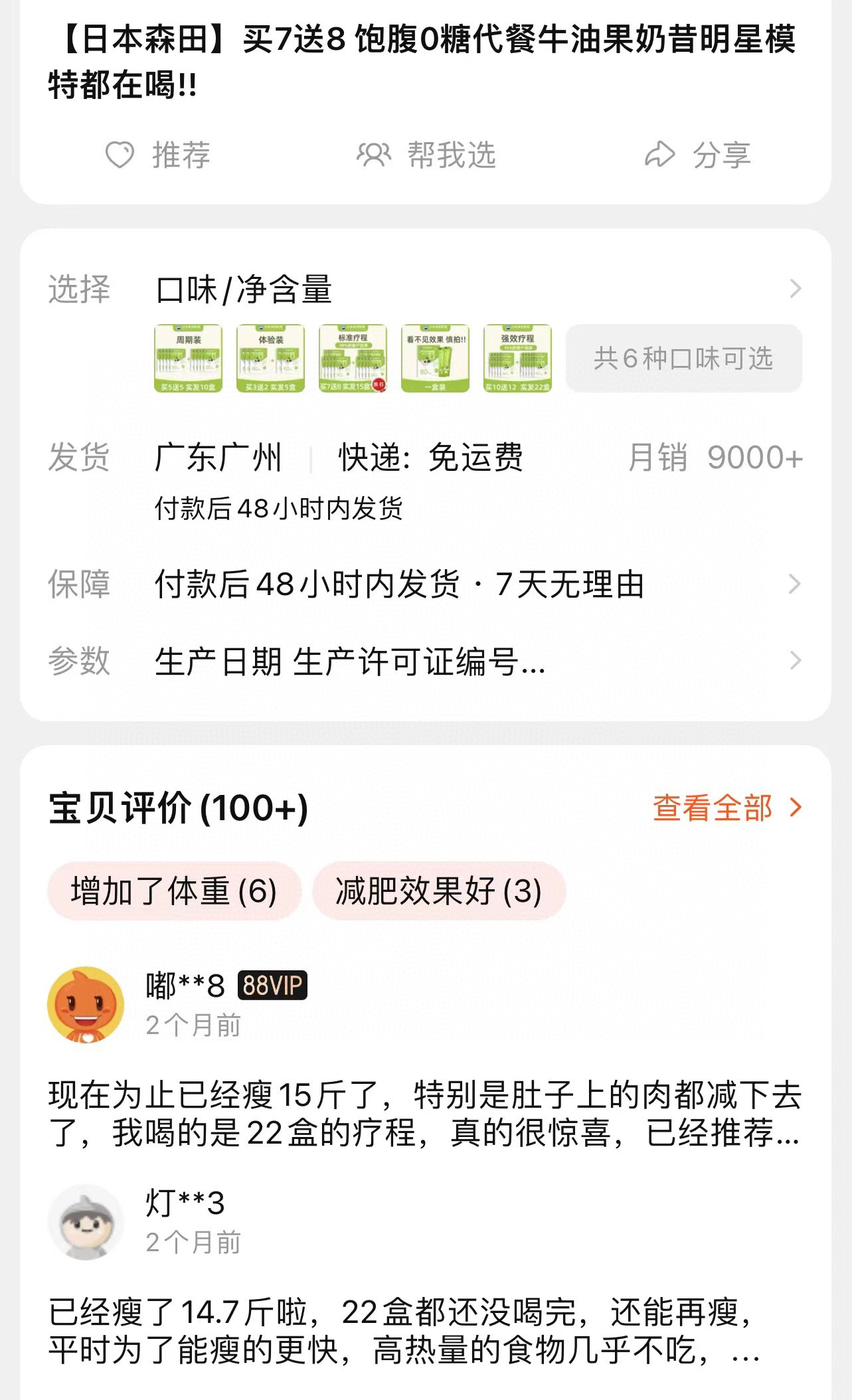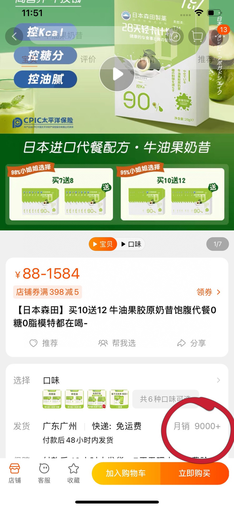 月销大几万单!日本森田牛油果胶原奶昔