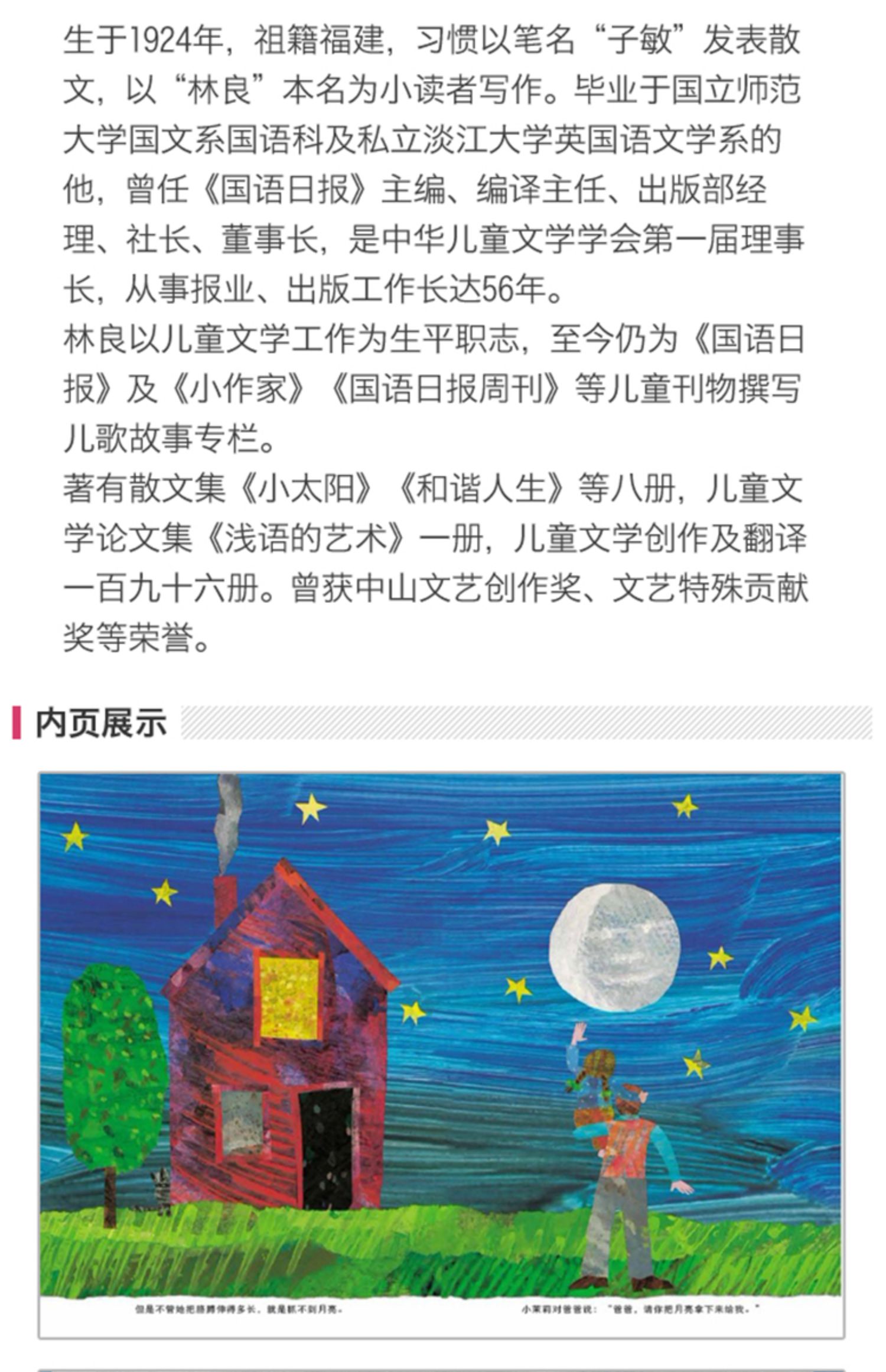信谊世界精选图画书:爸爸,我要月亮 精装硬壳装宝宝幼儿童绘