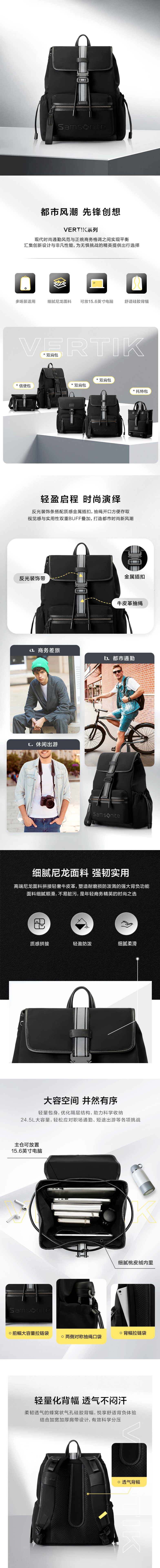 新秀丽VERTIK系列现代时尚通勤双肩包NR1*001