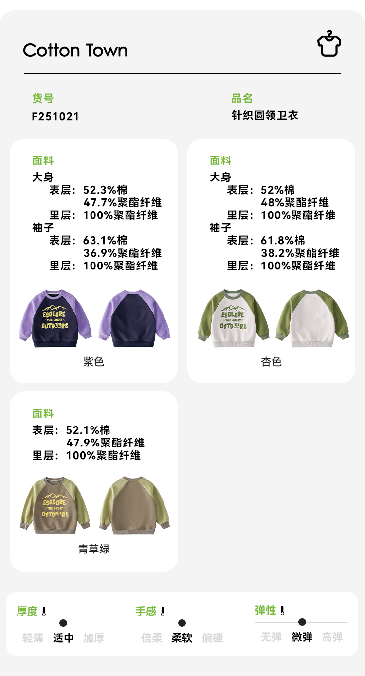 棉花堂2025年春款山系休闲运动针织圆领卫衣F251021
