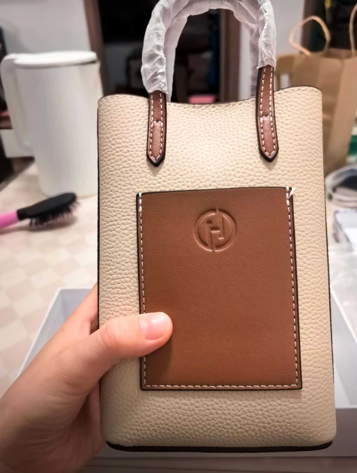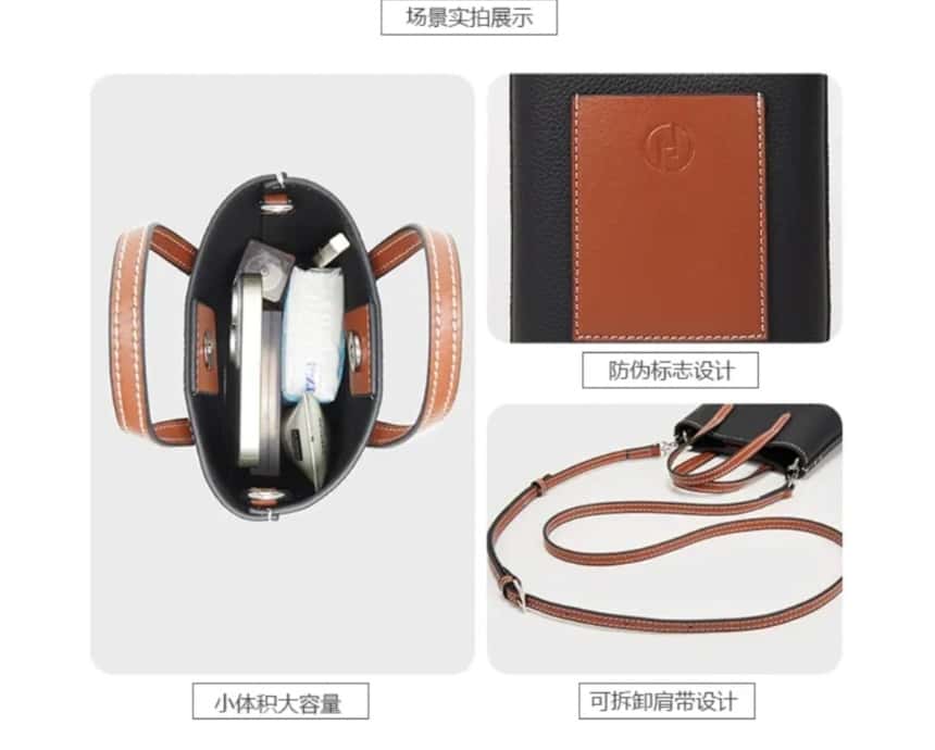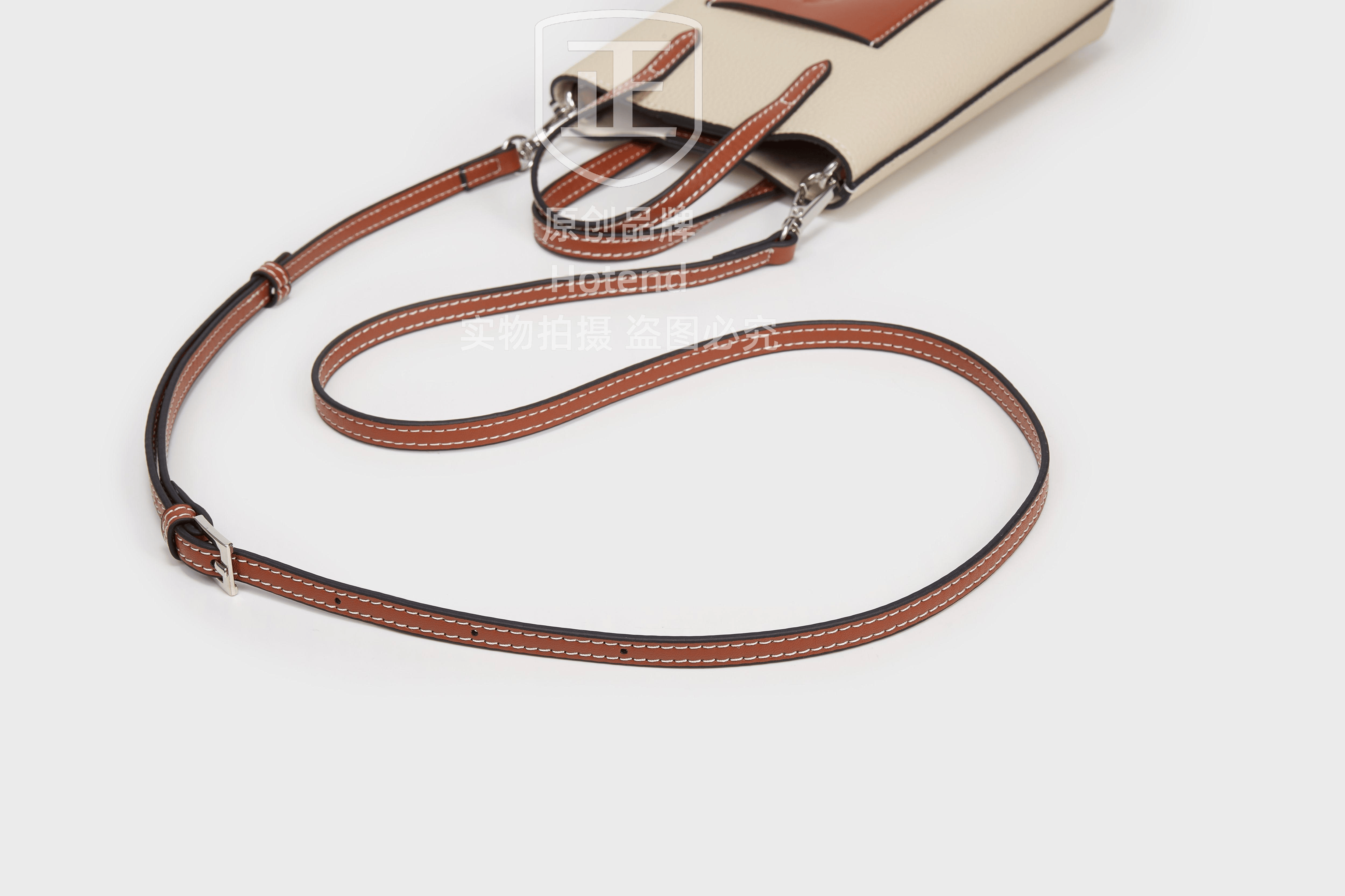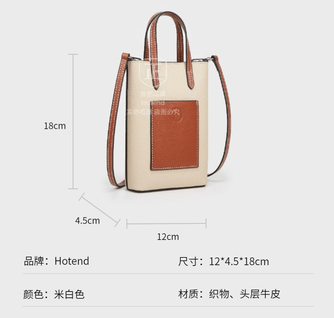 美国Hotend 轻奢时尚百搭牛皮薯条包 约12*4.5*18cm(米白色/黑色)