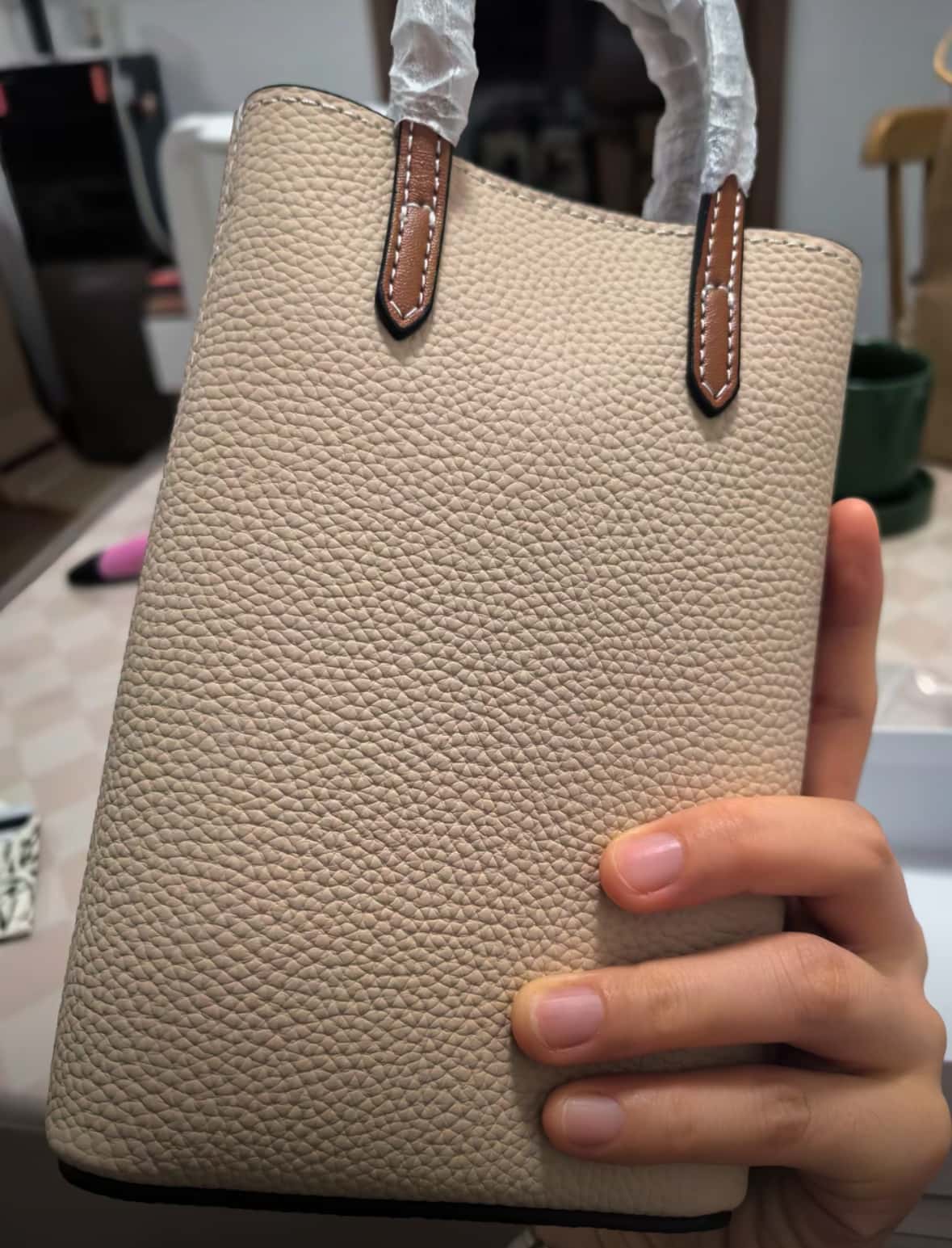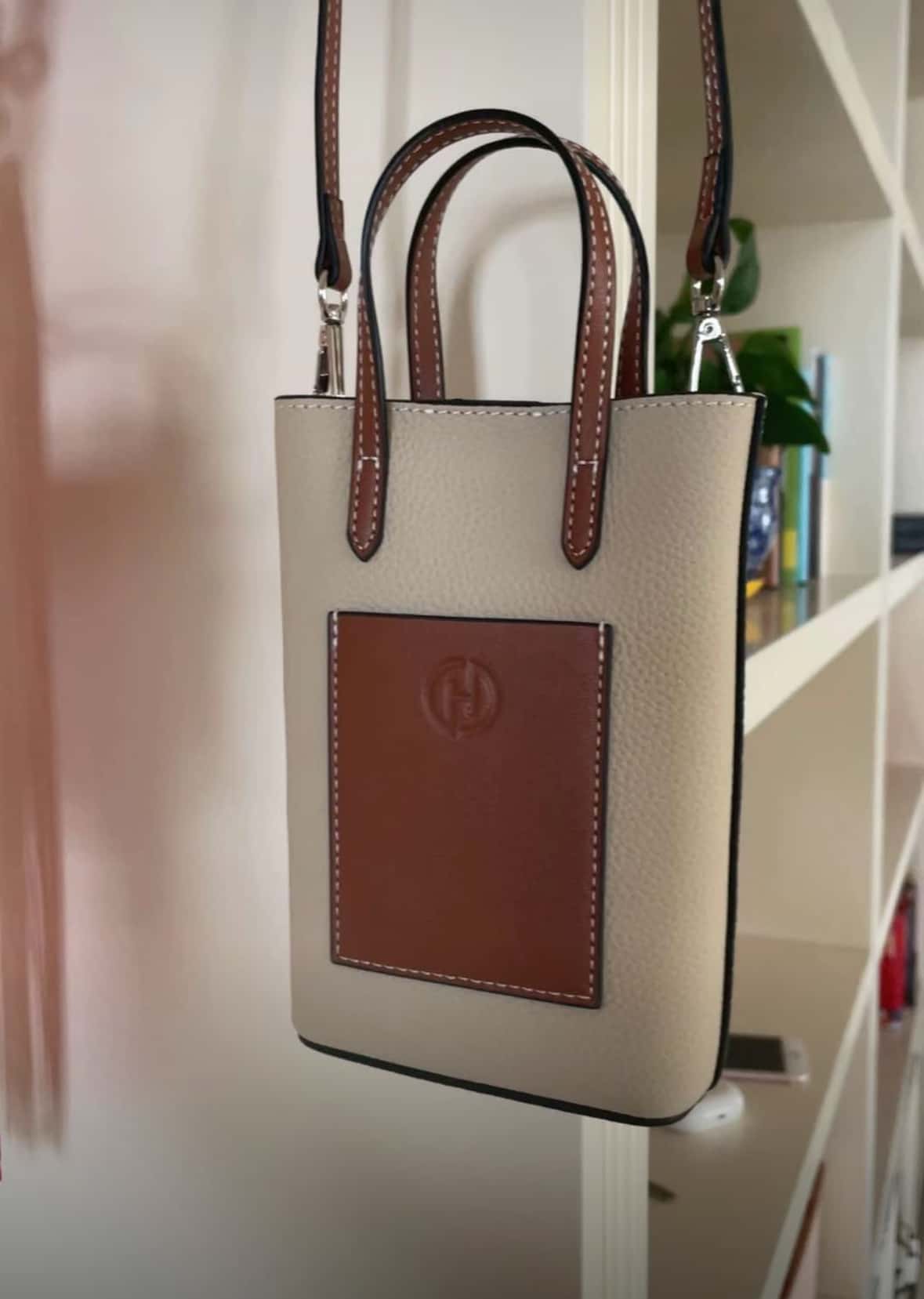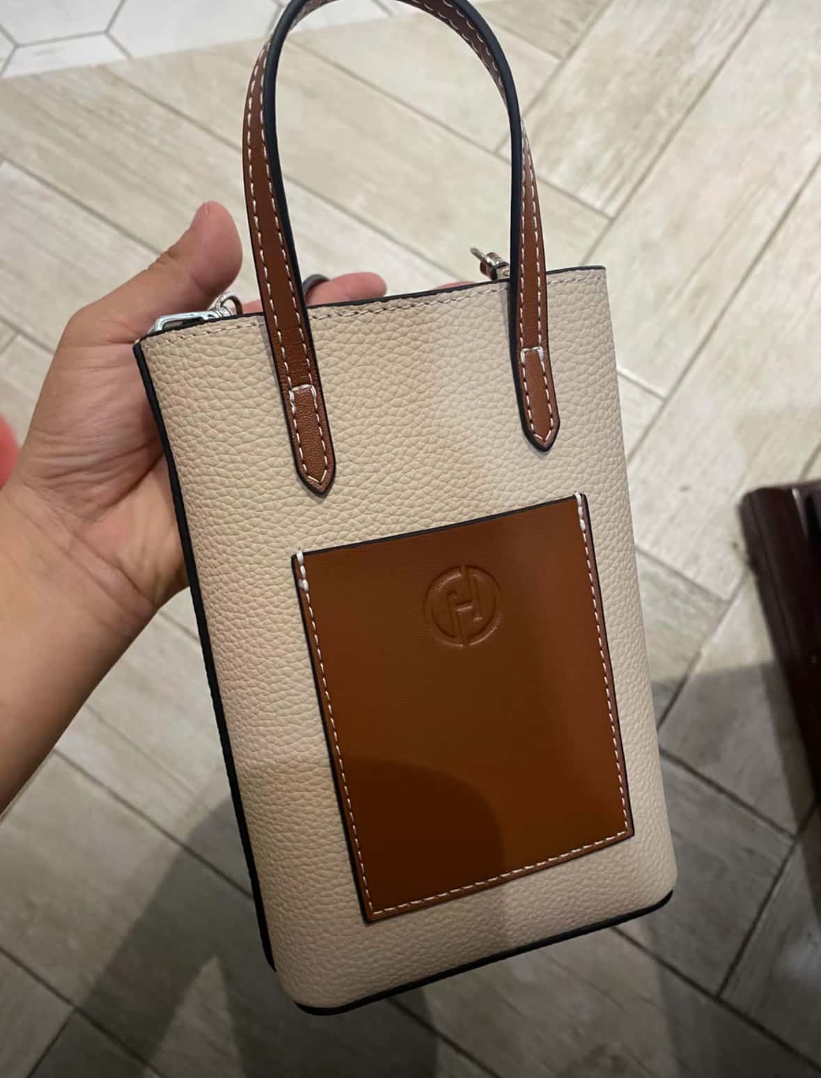 美国Hotend 轻奢时尚百搭牛皮薯条包 约12*4.5*18cm(米白色/黑色)