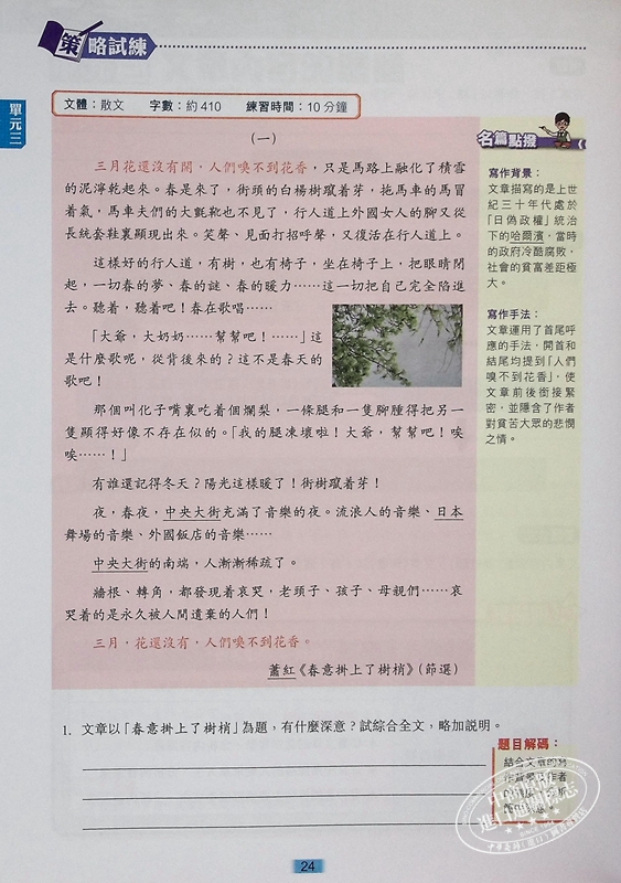 策略巩固栏目:试前锦囊、名篇点拨、题目解码、名篇仿写