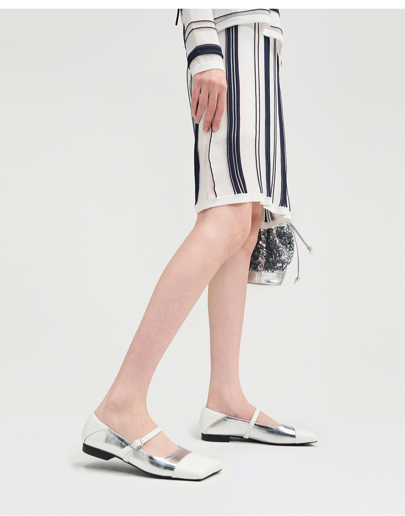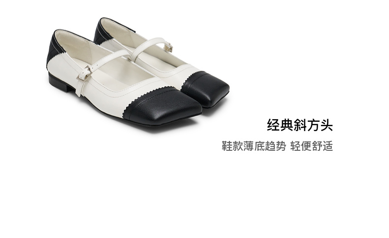 lost in echo2025春夏新款时尚薄底斜方头玛丽珍真皮单鞋芭蕾舞鞋