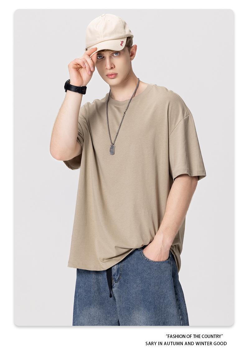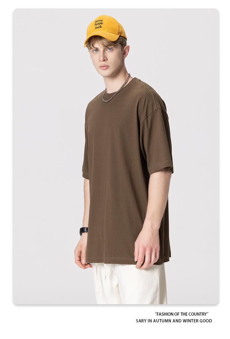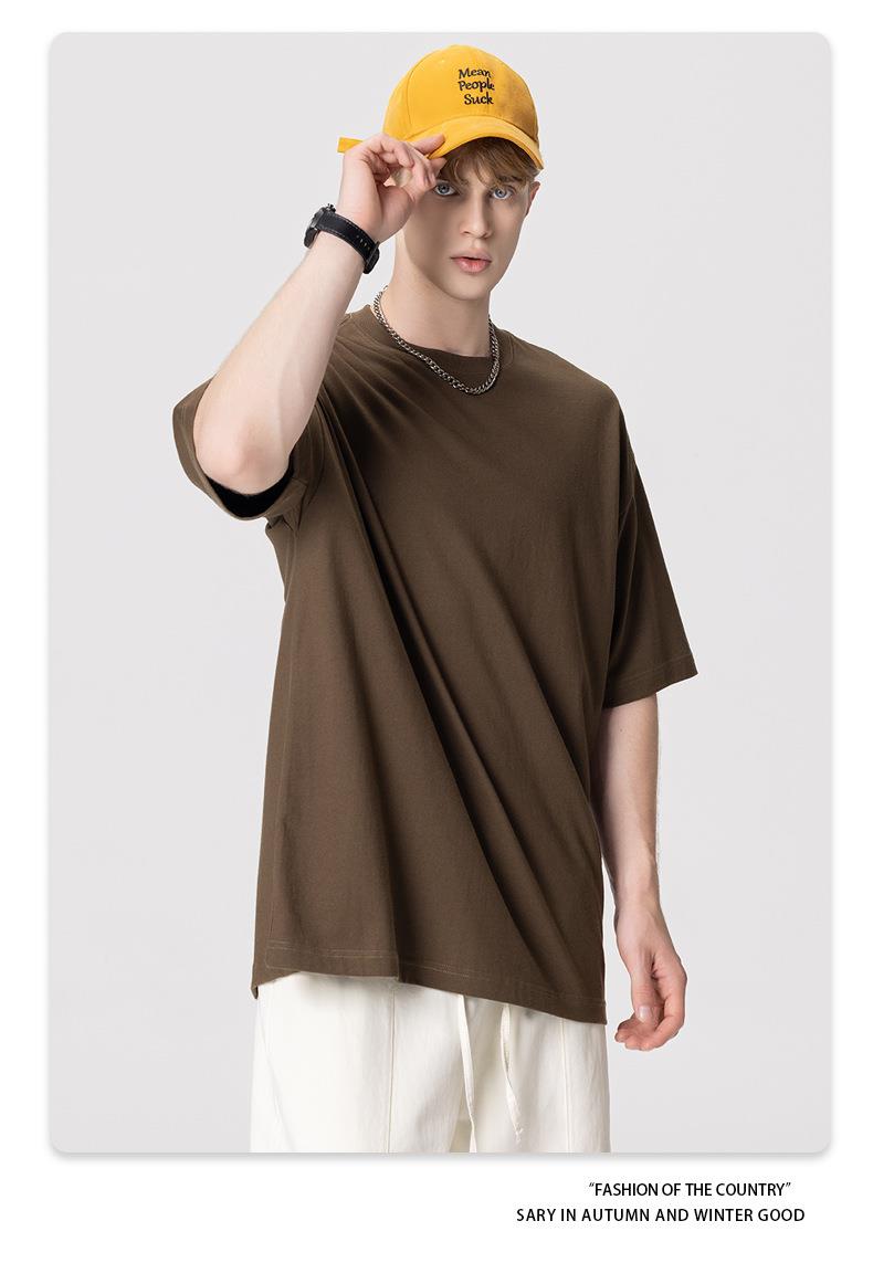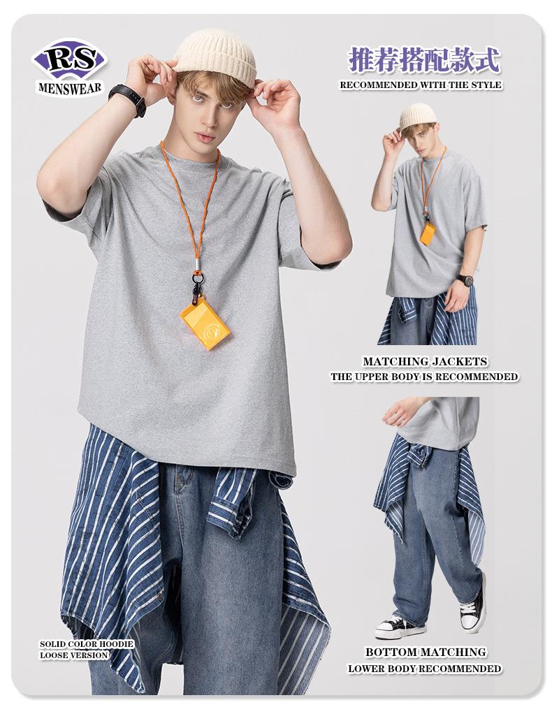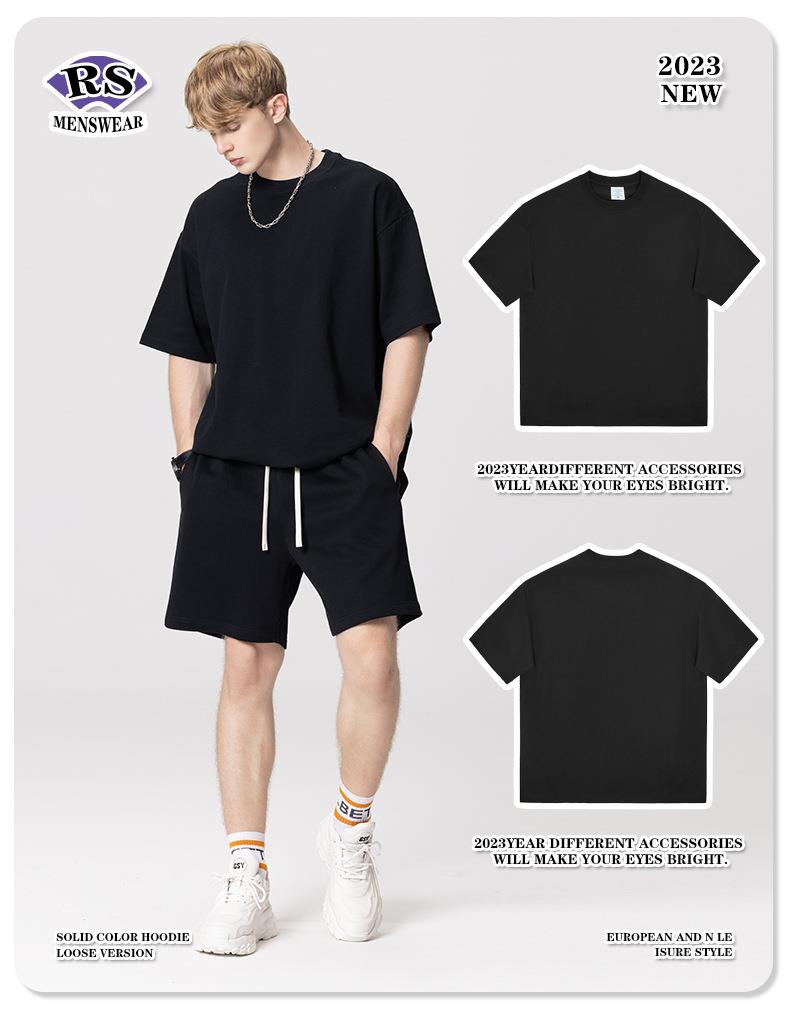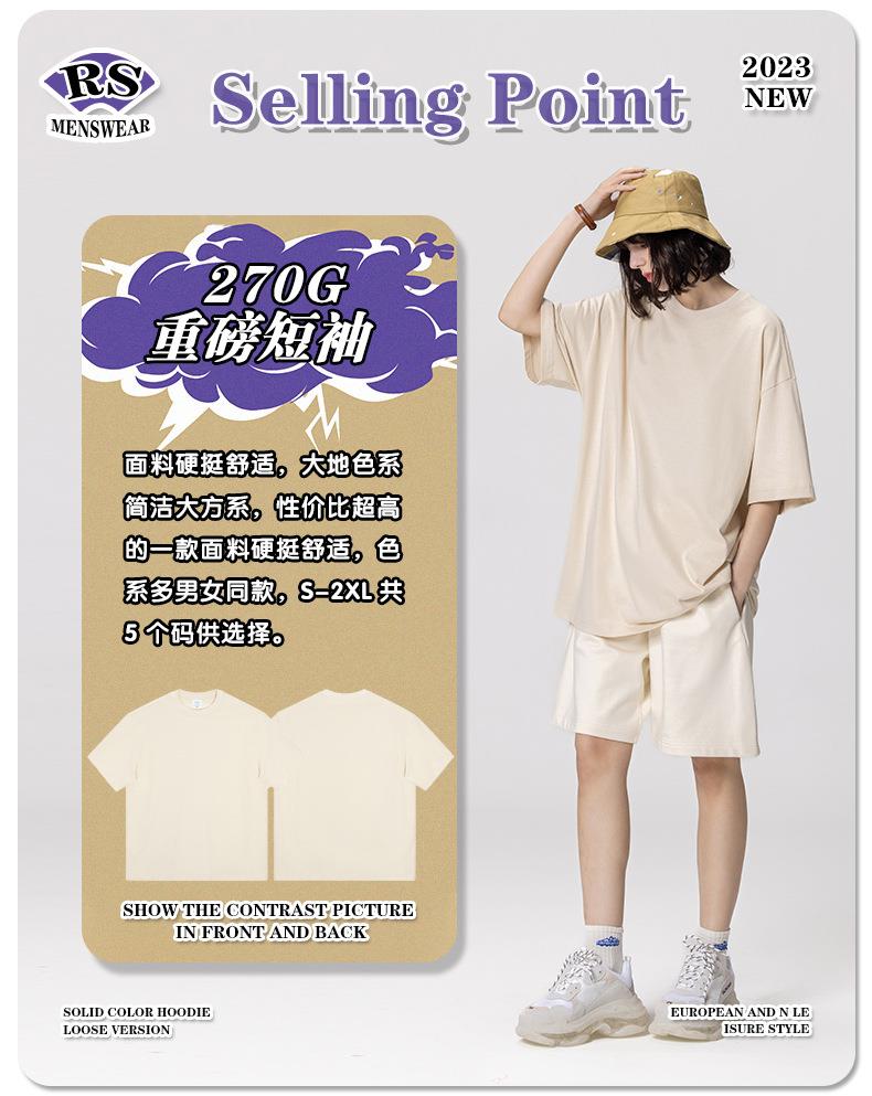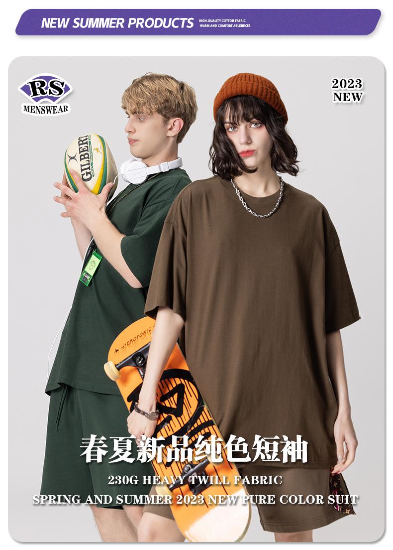 RS男装2023春夏重磅270g纯色短袖欧美大地色宽松潮牌t恤短袖男t恤