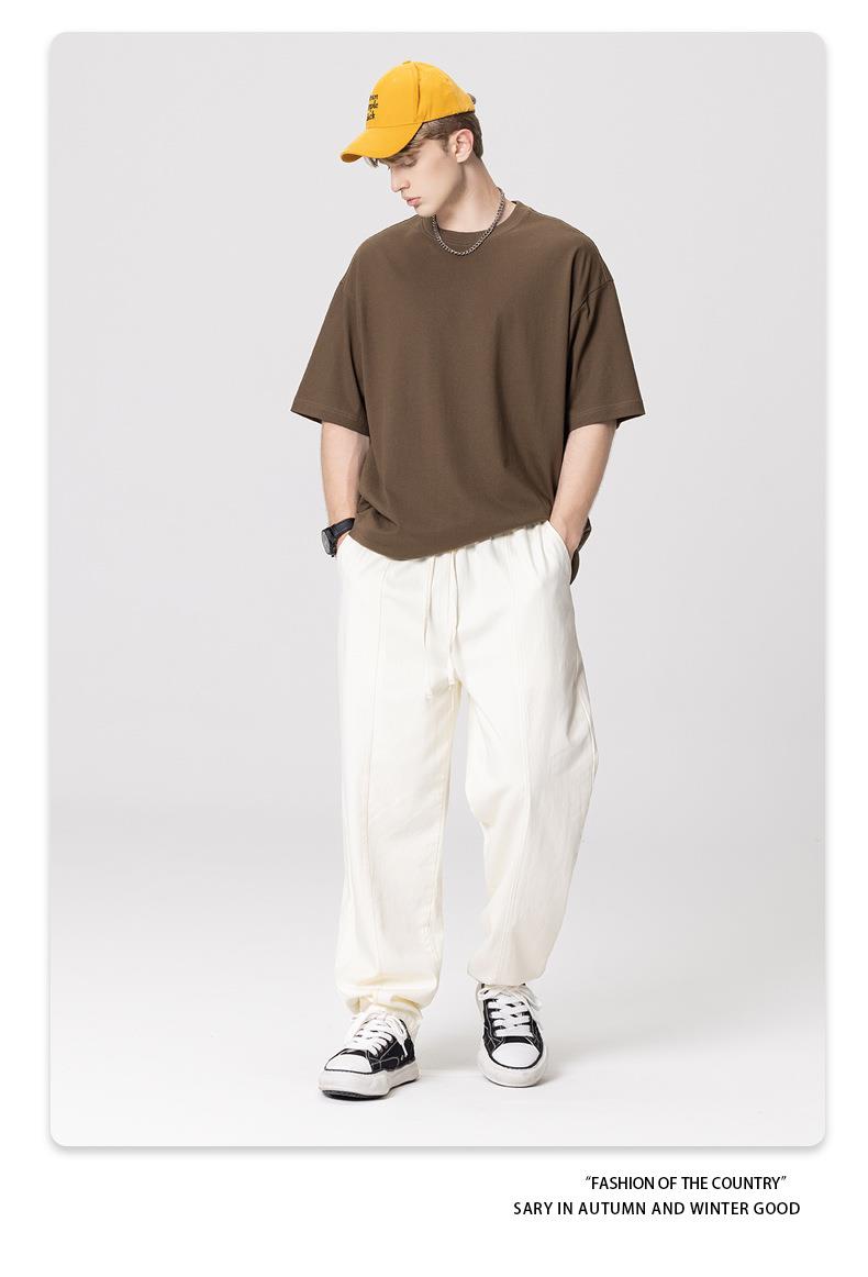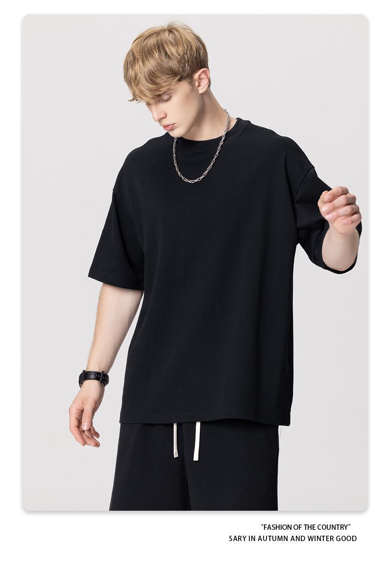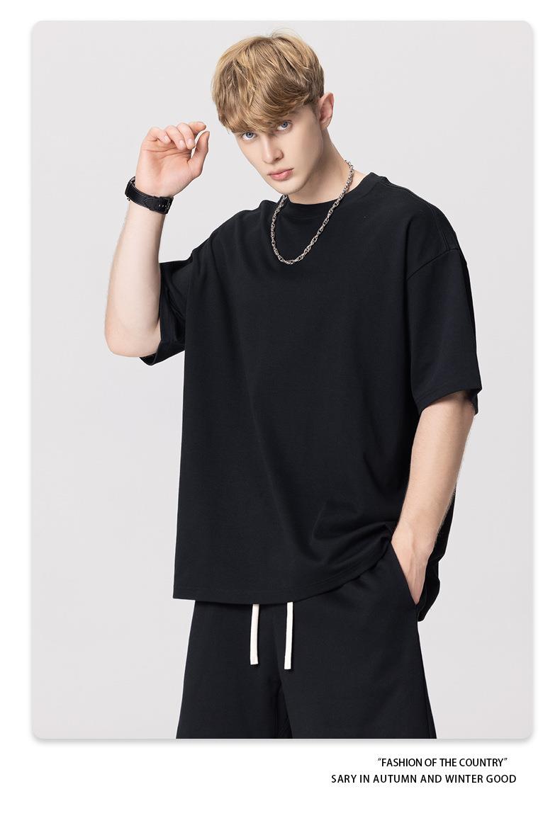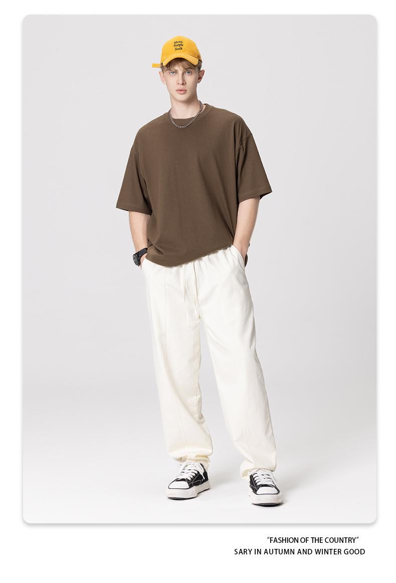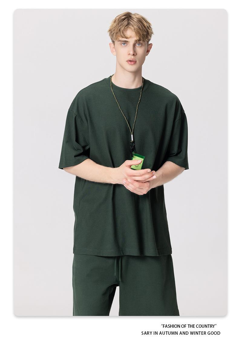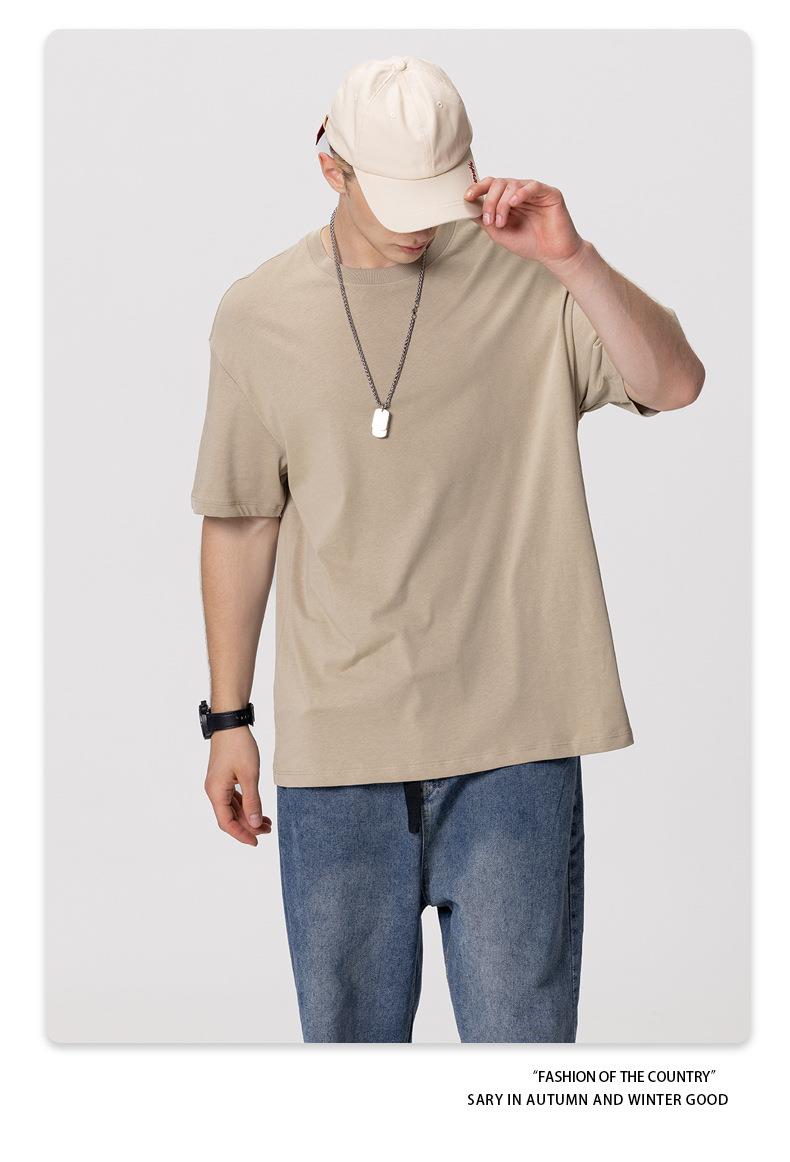 RS男装2023春夏重磅270g纯色短袖欧美大地色宽松潮牌t恤短袖男t恤