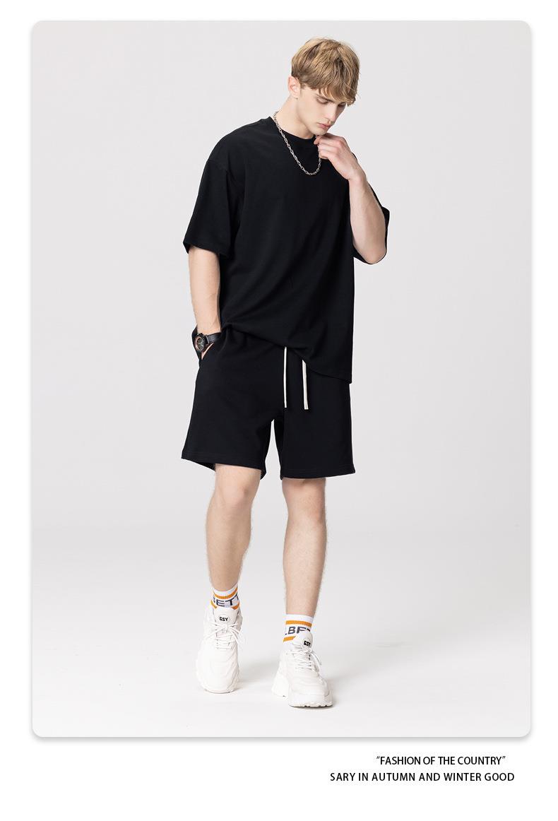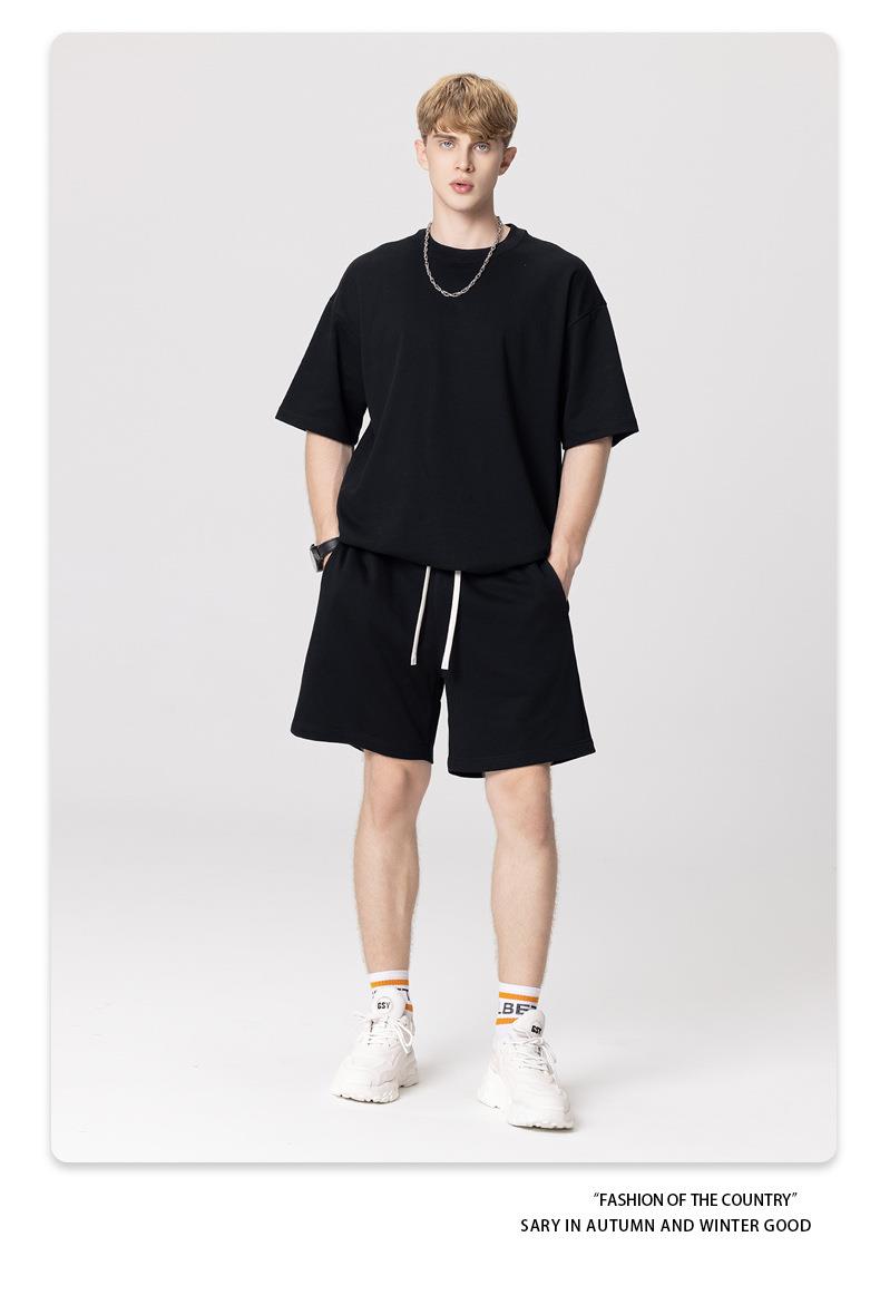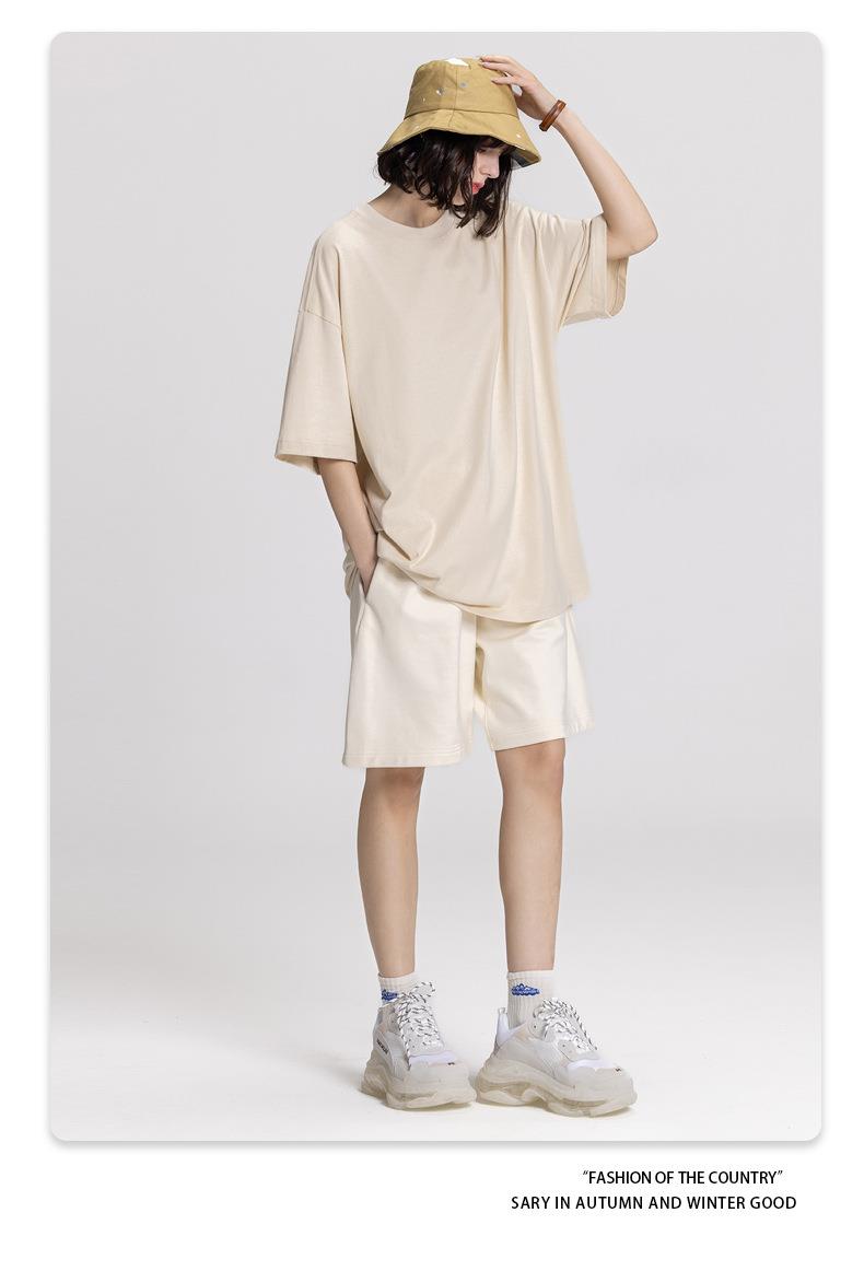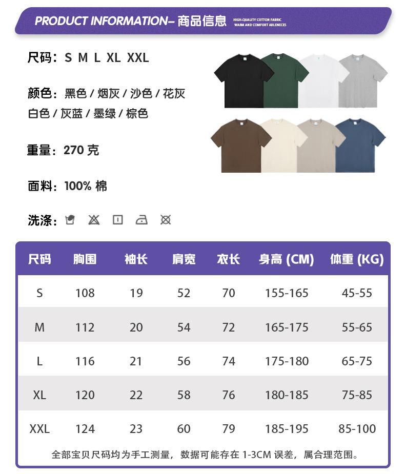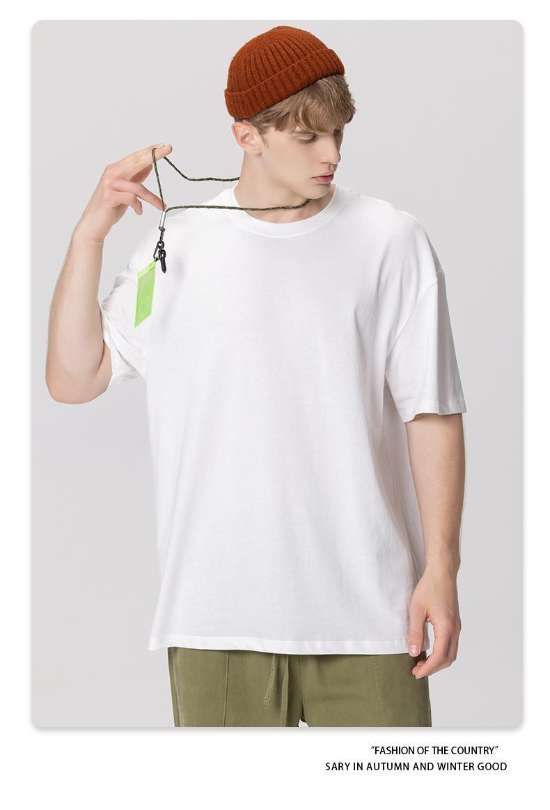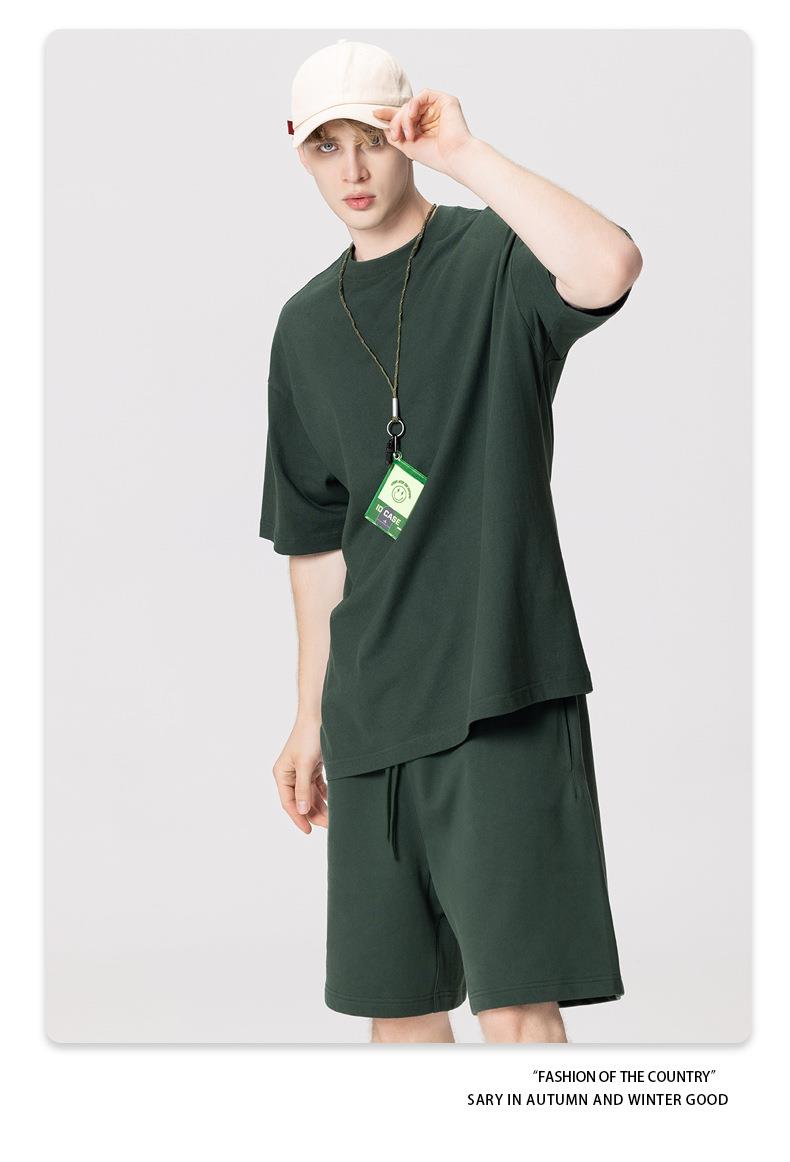 RS男装2023春夏重磅270g纯色短袖欧美大地色宽松潮牌t恤短袖男t恤