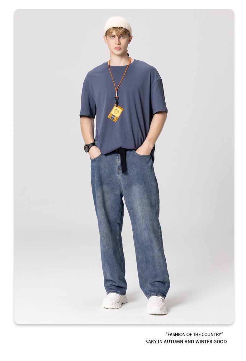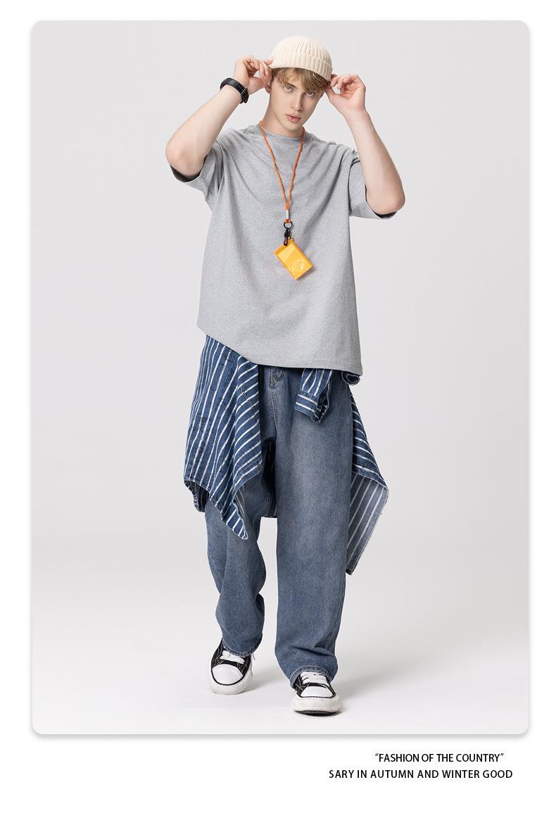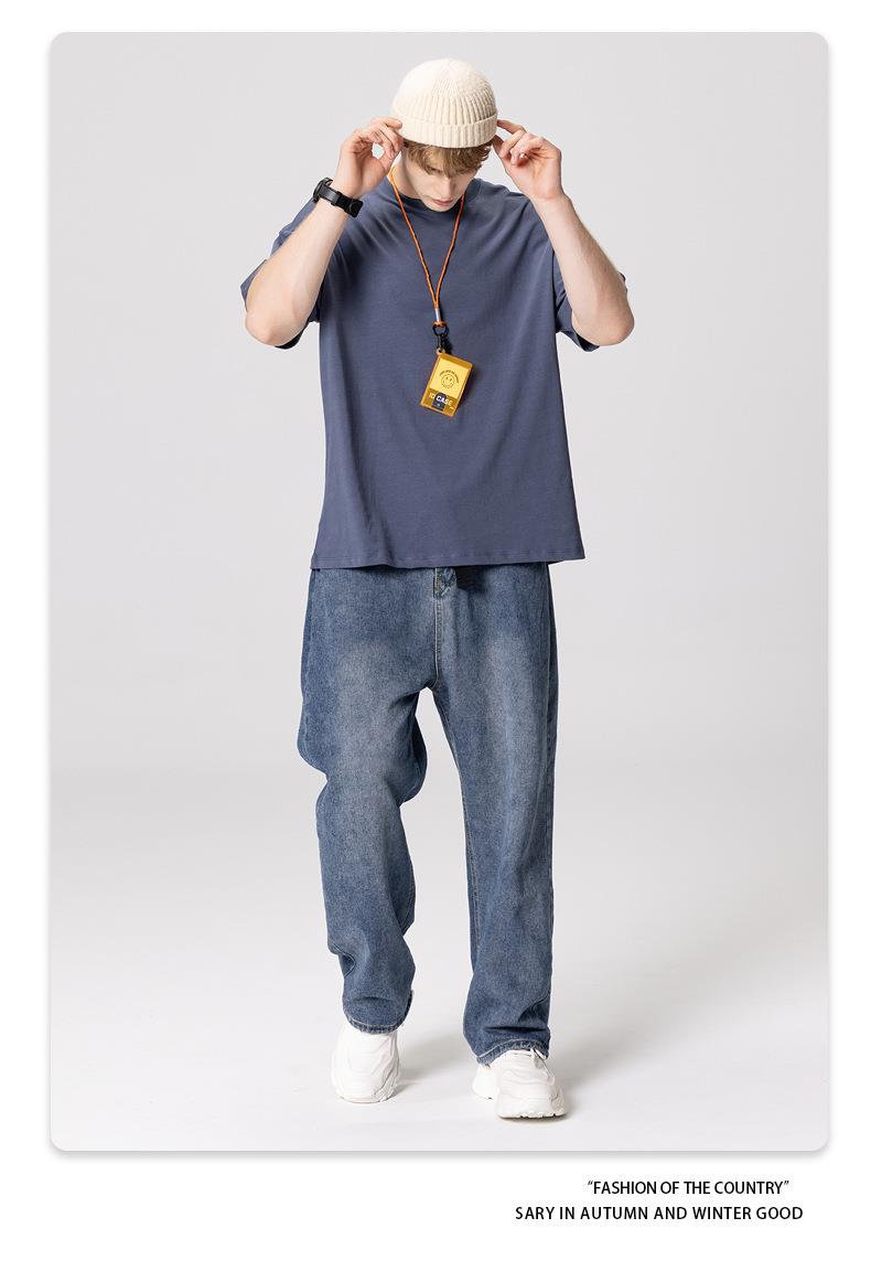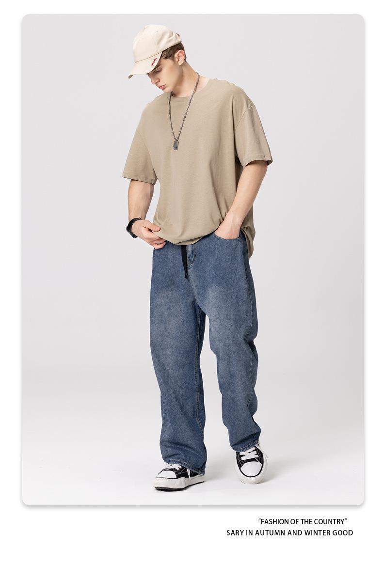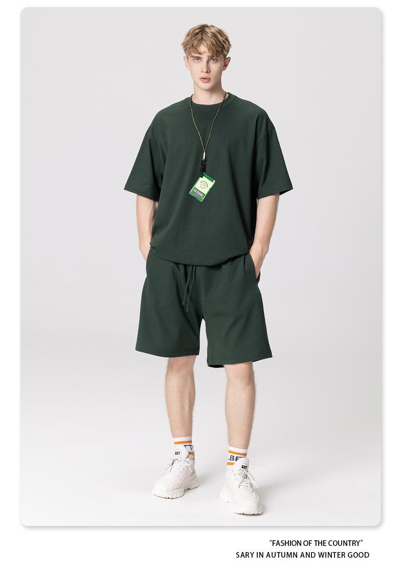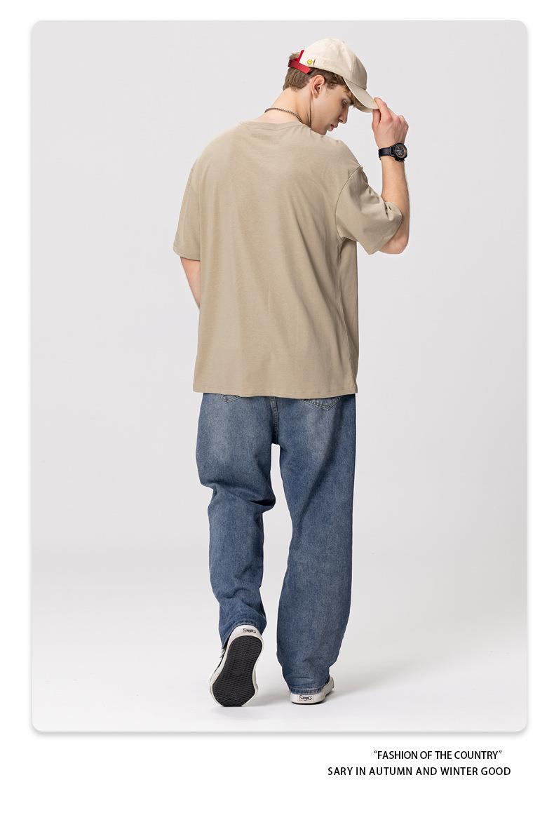 RS男装2023春夏重磅270g纯色短袖欧美大地色宽松潮牌t恤短袖男t恤