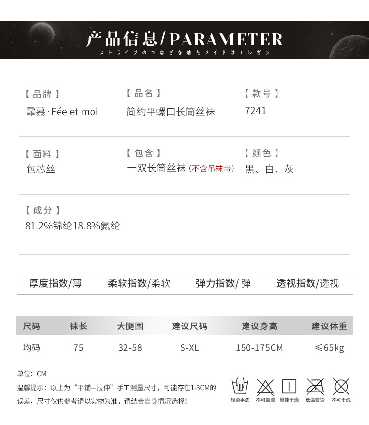 霏慕 简约平螺口长筒丝袜7241 性感情趣丝袜透视情趣内衣黑丝诱人