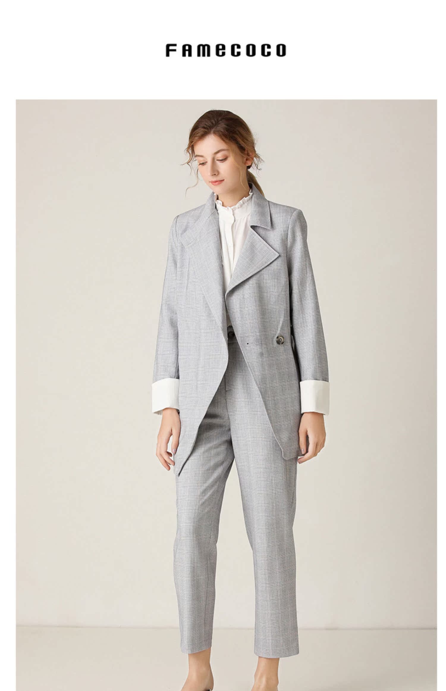 famecoco范可儿休闲裤子女格纹宽松显瘦百搭潮F201GA035