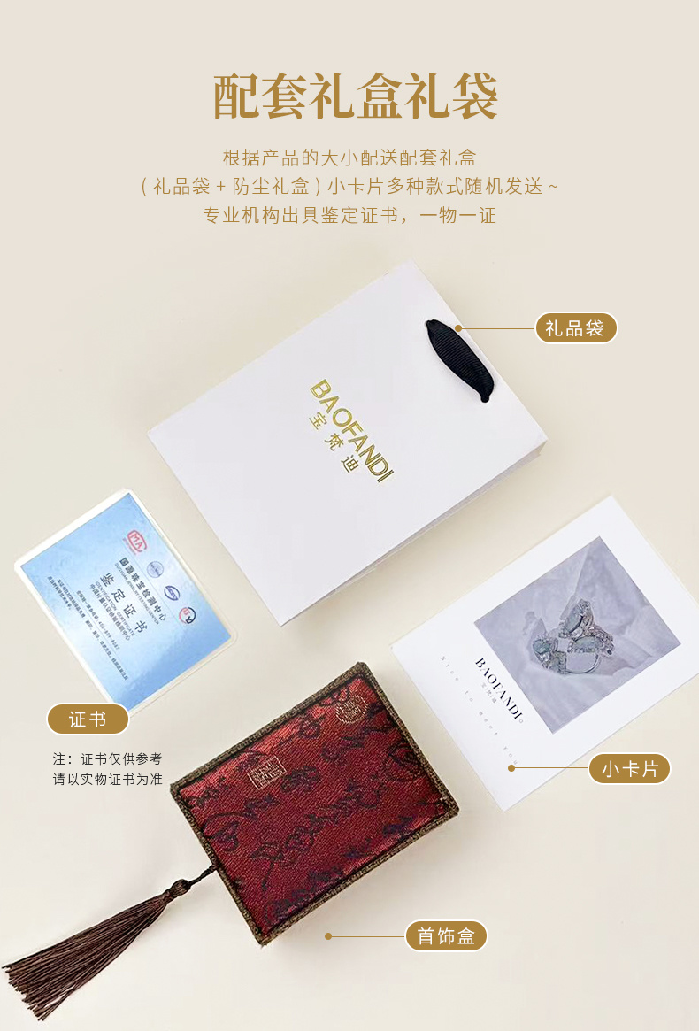 套装包含:首饰盒+首饰+礼袋+卡片+证书